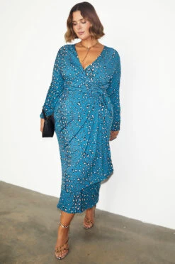 NEVER FULLY DRESSED Reversible Teal Animal Wrap Dress