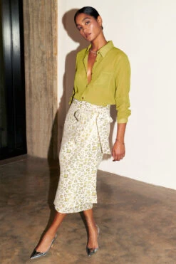 NEVER FULLY DRESSED Cream And Lime Animal Jacquard Jaspre Skirt