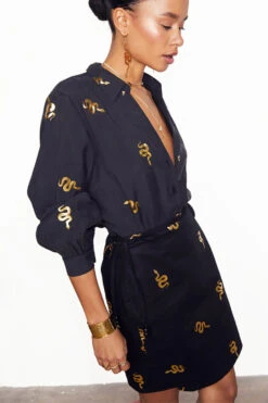 NEVER FULLY DRESSED Black Snake Mini Wrap Skirt
