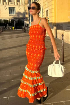 NEVER FULLY DRESSED Orange Sahara Shirred Piper Skirt