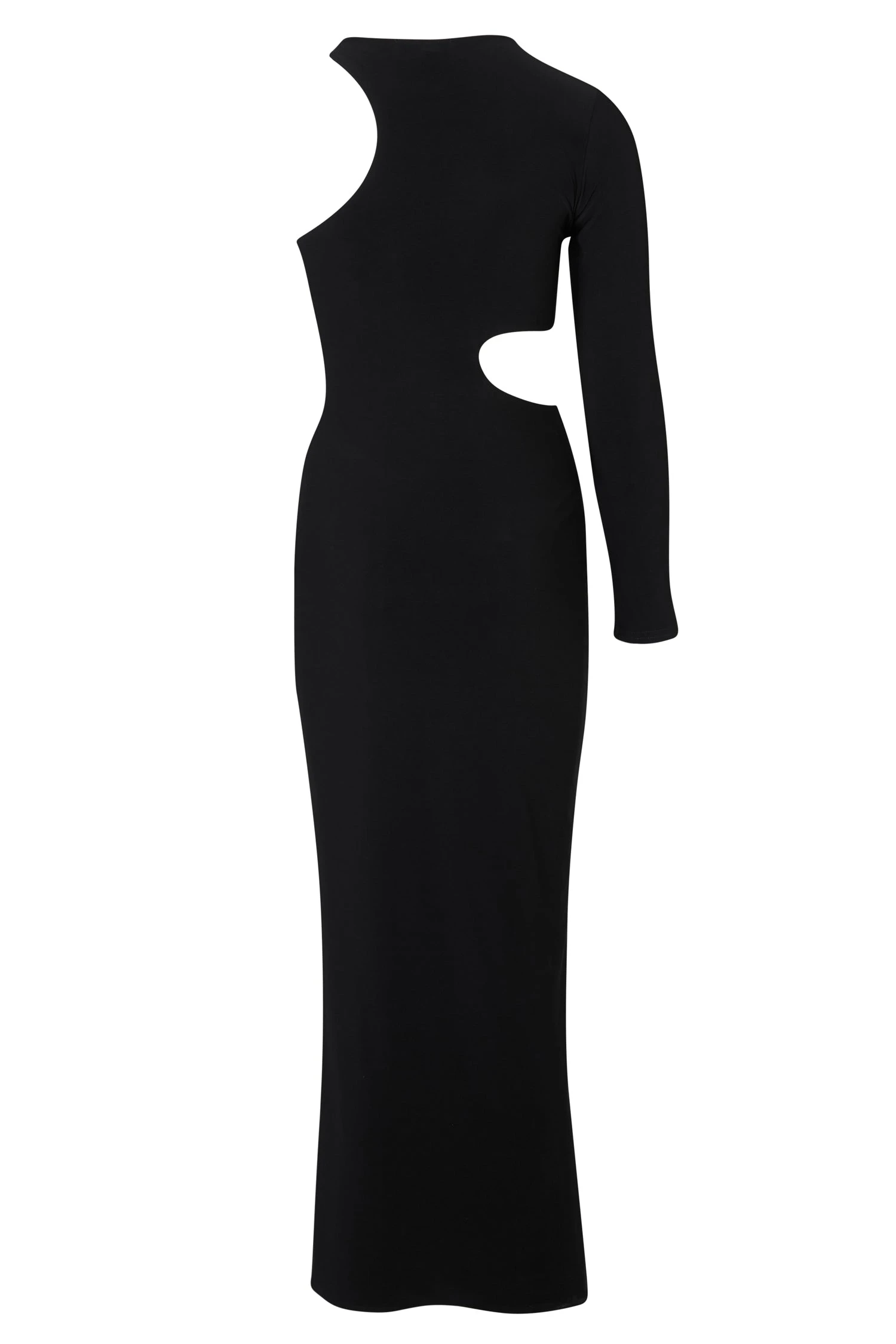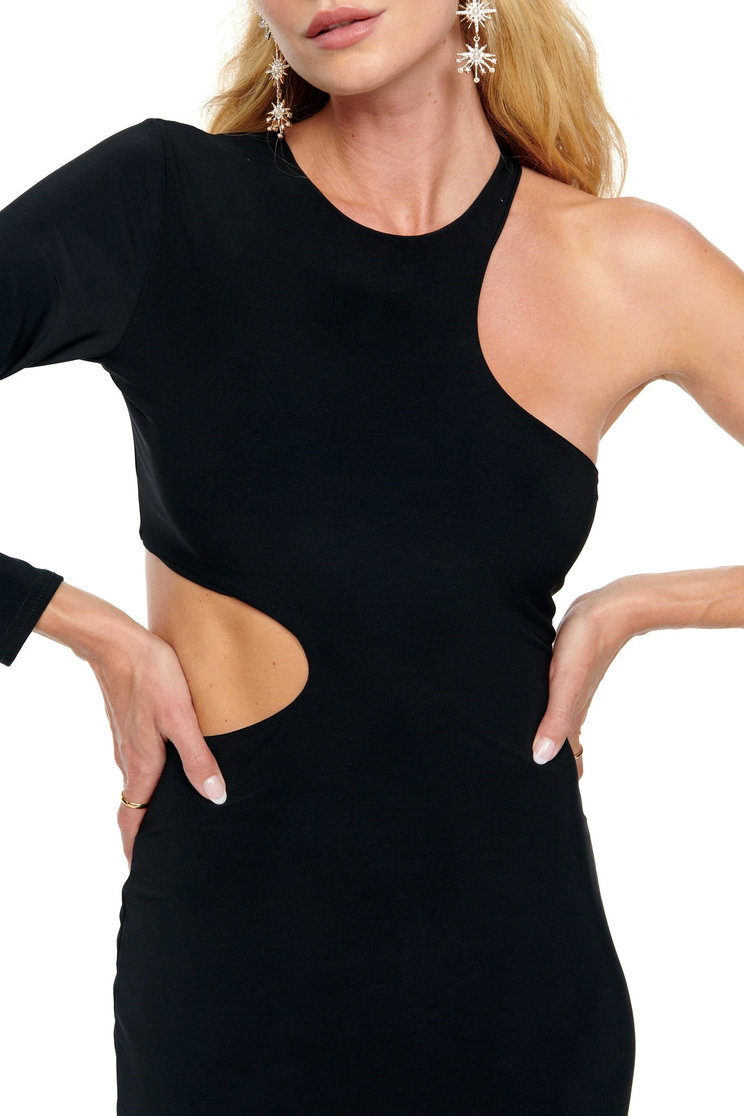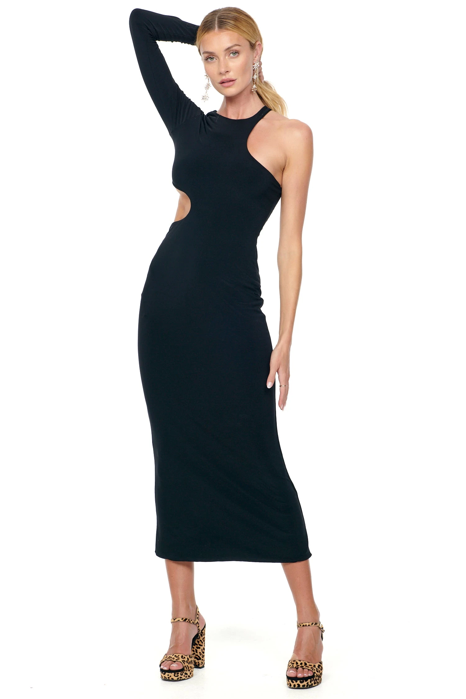 Everyone needs an elegant black dress and this is the one for any occasion. With an especially soft fabrication and a figure-skimming fit and cut out details. It pairs equally well with boots or heels.