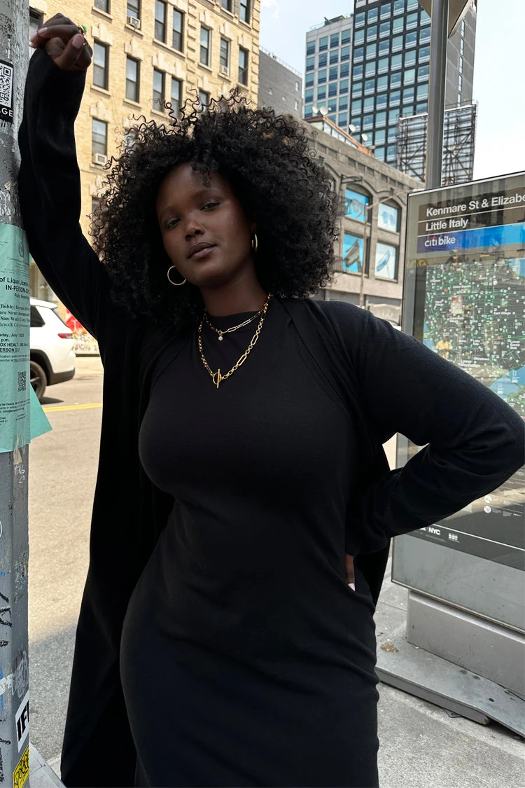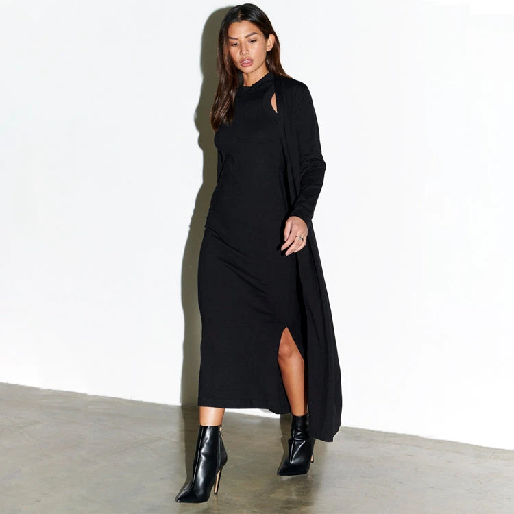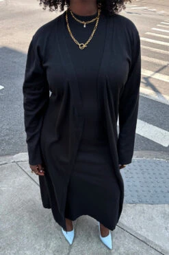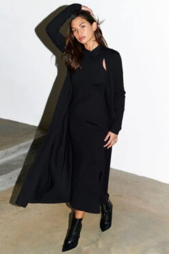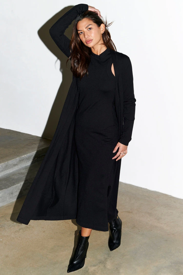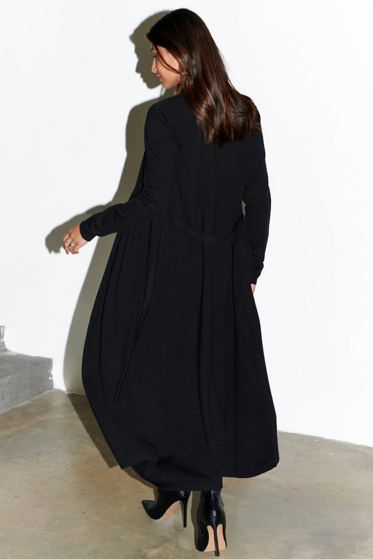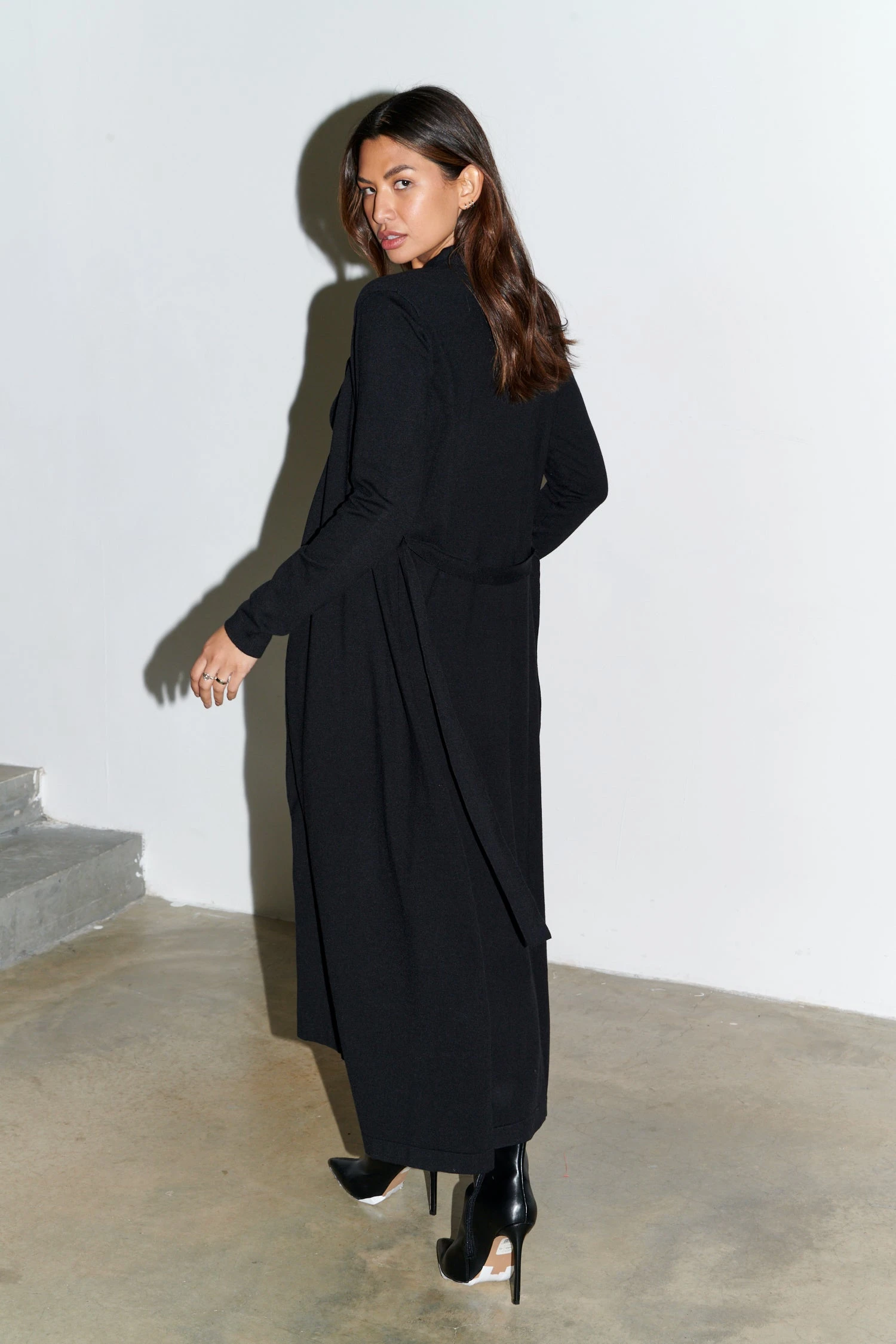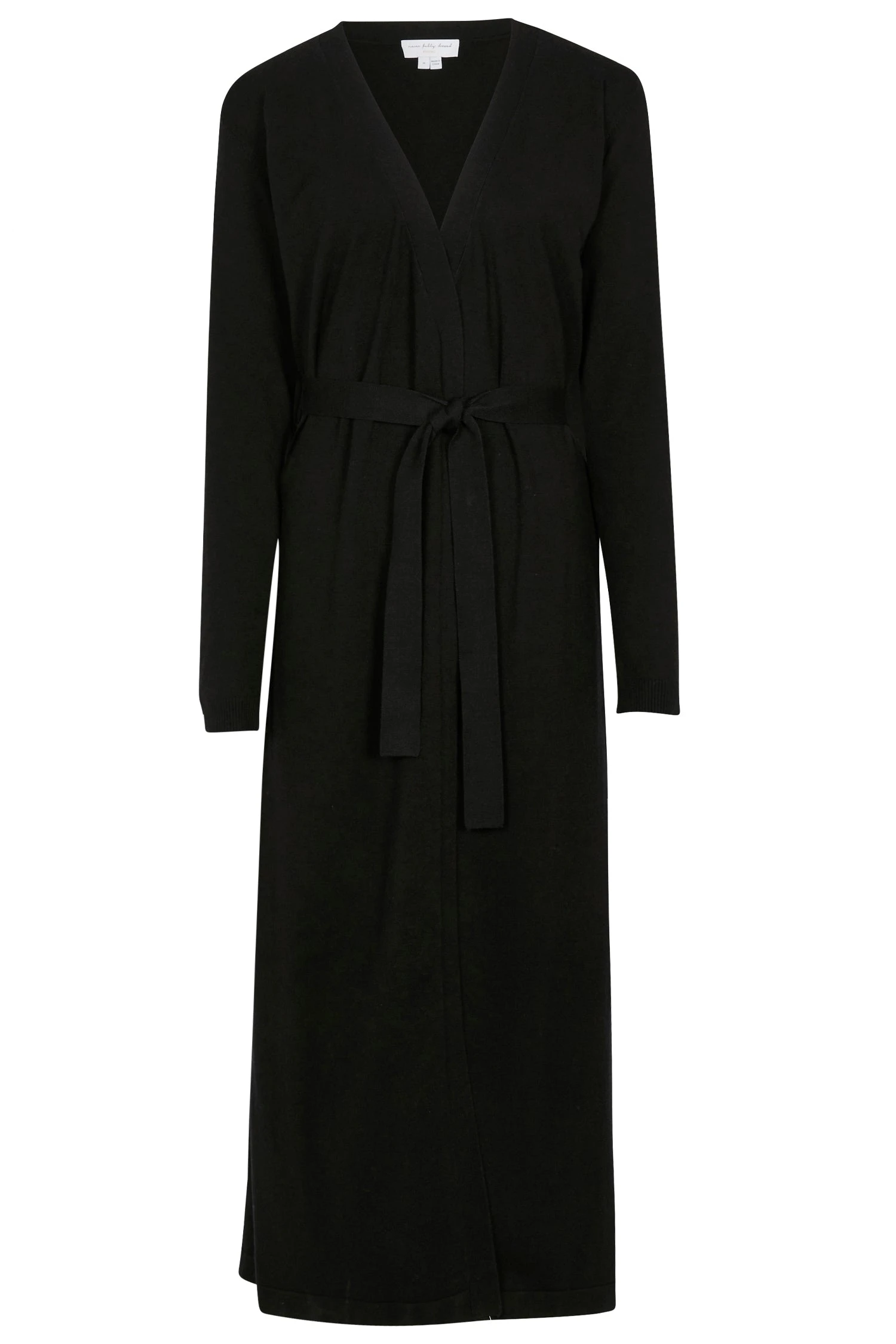Cosy and classy, this beautiful black longline cardigan is designed with comfort in mind with a soft touch and a belt to tie. The perfect throw on and go cardigan or over a dress with heeled boots for a chic fit.