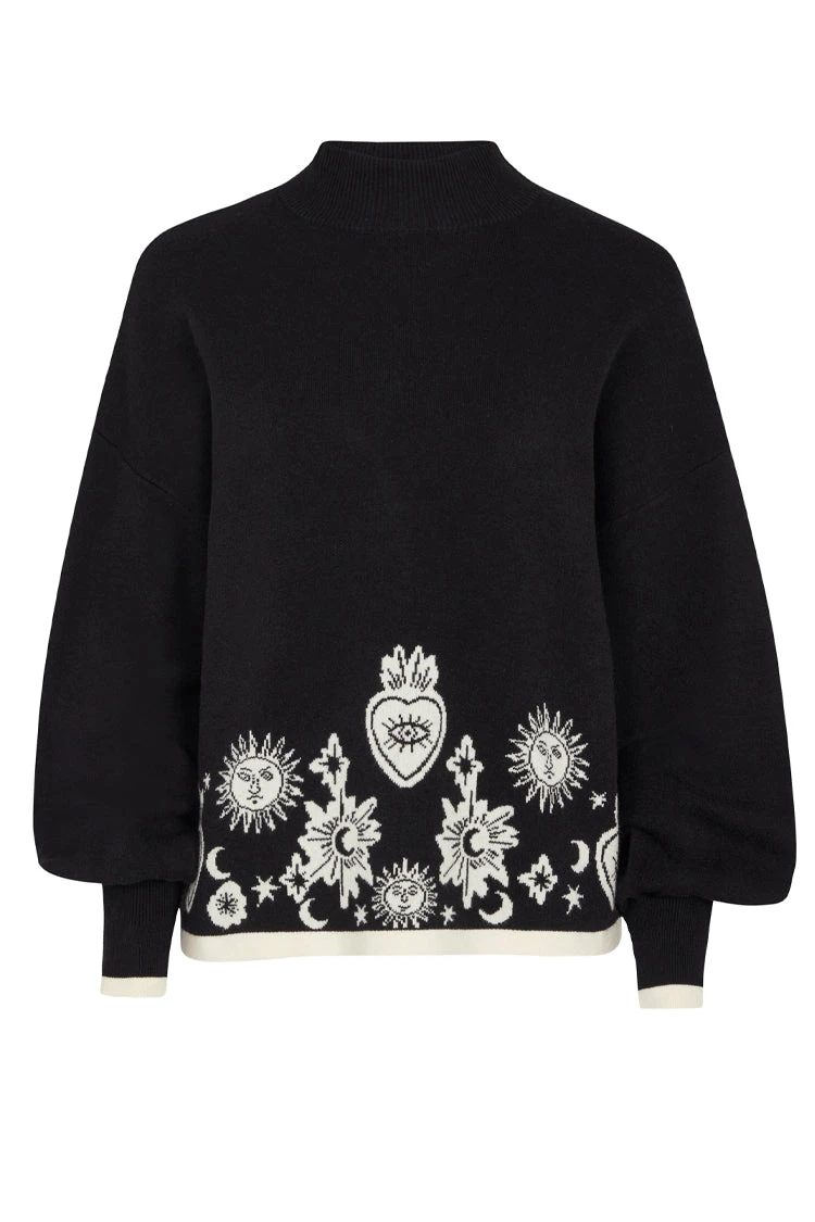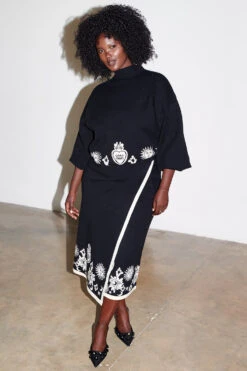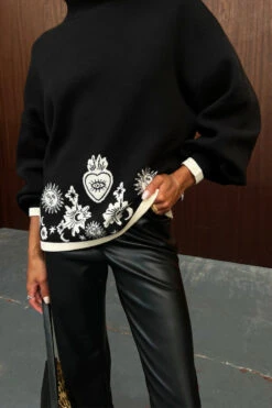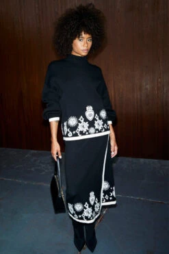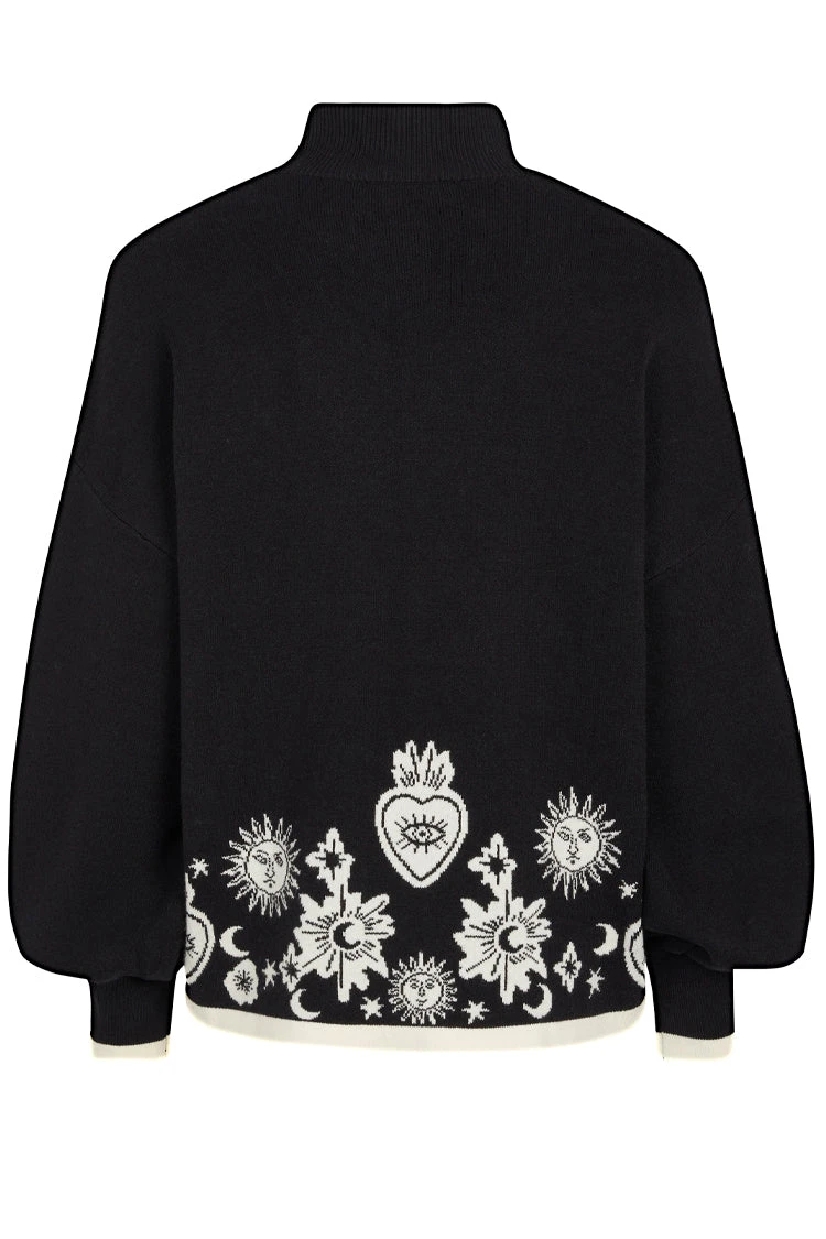 Woven with a jacquard that fits into the manifestation theme we are obsessed with… Monochrome palette perfect for colder seasons, and white trims give it a gorgeous elevation. A knit base we are truly proud of – a buttery soft stretch that feels so weighty and luxe. Blouson sleeves and a high neck give it a sophisticated edge that feels right for office wear to party.