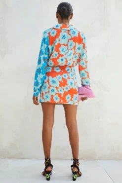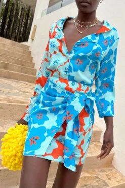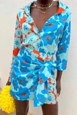 Our gorgeous Blue Ally Lucy skirt is a glossy satin piece that is a wardrobe essential. It’s versatility means you can pair with endless items.. the matching shirt, a plain cami, sandals or heels! It sits high on the waist and the wrap tie is adjustable to suit the desired fit.