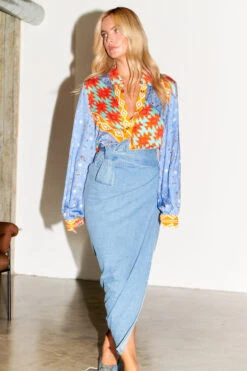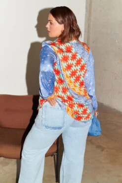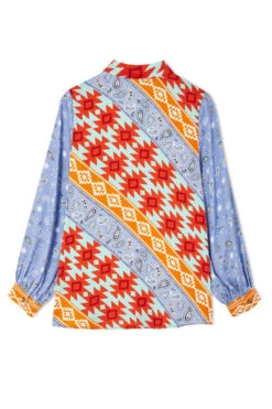 A summary down base, striped with some of our favourite prints. We love a contrast of patterns and colour, so this statement piece pairs well with denim. The soft and breezy viscose makes for gorgeous movement, so of course we had to add a blouson sleeve. The placket and summary down front give the shirt a soft tailored finish, meaning you can wear for occasions, weekend coffee runs, or elevated officewear.