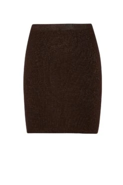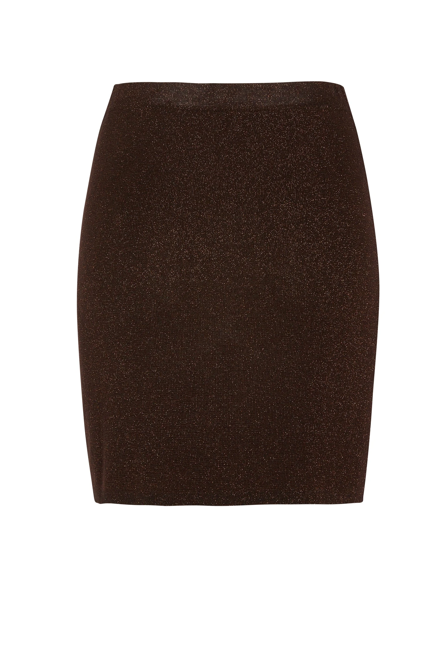 A soft stretch mini skirt in a lustrous bronze fabric, dusted with sparkles that catch the light. The elasticated waistband and simple silhouette makes for a super comfortable fit. Wear with the matching cardigan for all of your festivities.