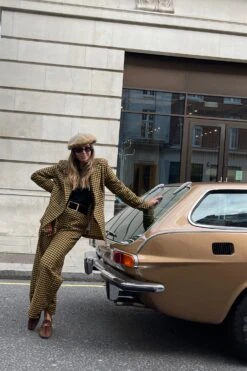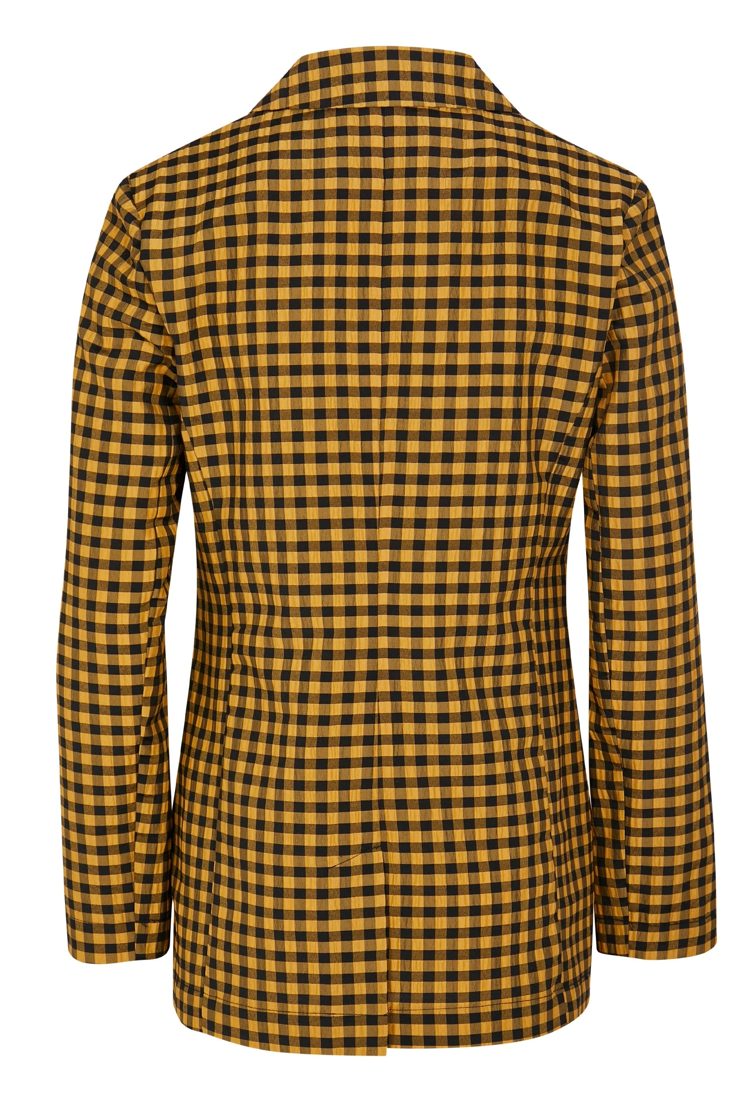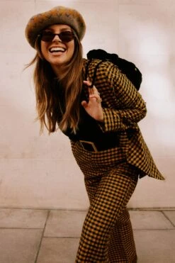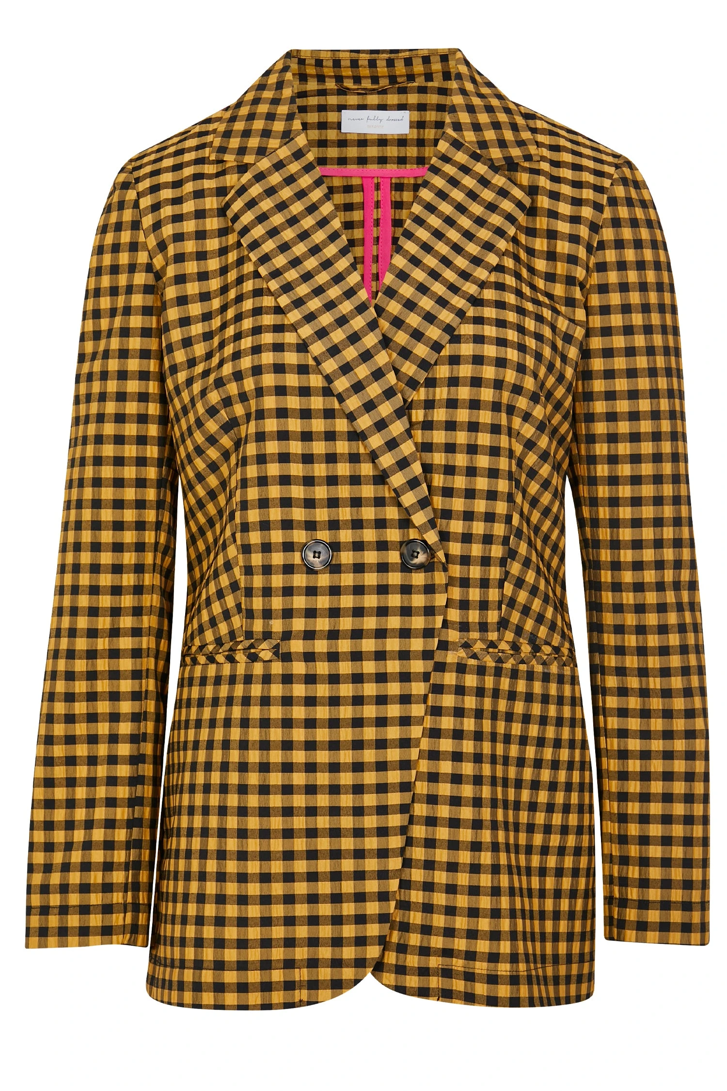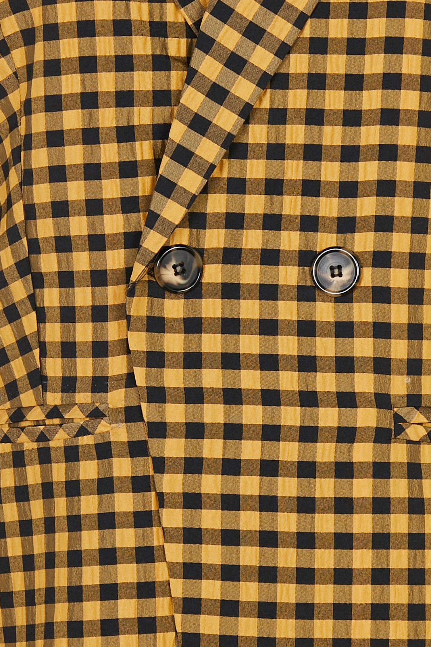 A structured double breasted blazer decorated with contrasting black and yellow gingham. Wear with a sleek all black outfit or pair with the matching Check trouser for an eccentric suiting look. Style with boots and big sunnies!