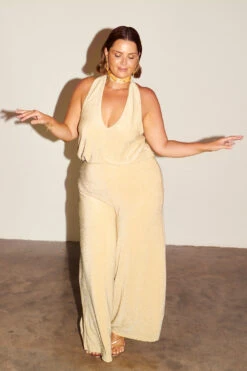 Elevate your wardrobe, one you’ll be living in as much as we have. Stunning as evening wear, party wear or even brunch with the girls. With a halter tie and an open back, all wrapped up in a chic wide leg jumpsuit. Timeless and luxurious perfection.