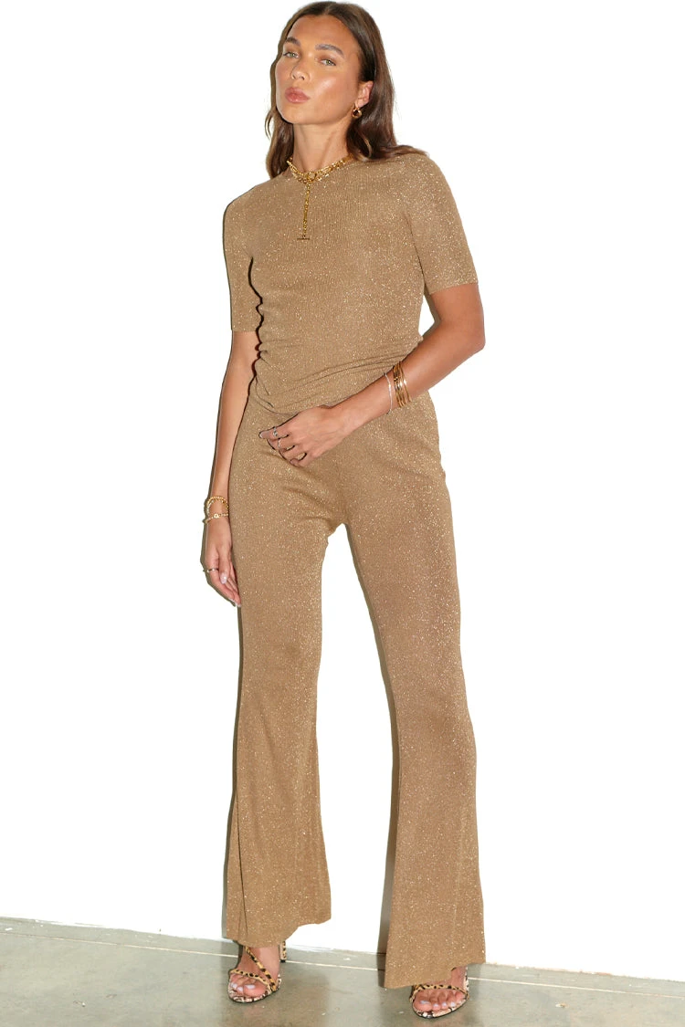 A perfect wide leg trouser covered in sparkles giving fun summer vibes. Cut from a stretch fabric that feels soft against the skin, with an elasticated waistband for added comfort. Pair with the matching cardigan and some chunky heels to complete your Christmas party fit.