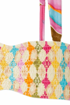 With thick straps and its stretchy sheered fabric this abstract bikini top it is the perfect choice for those wanting a bit of extra support. Pair with our matching abstract tie waist bottoms or for more coverage our abstract high waist swim brief.