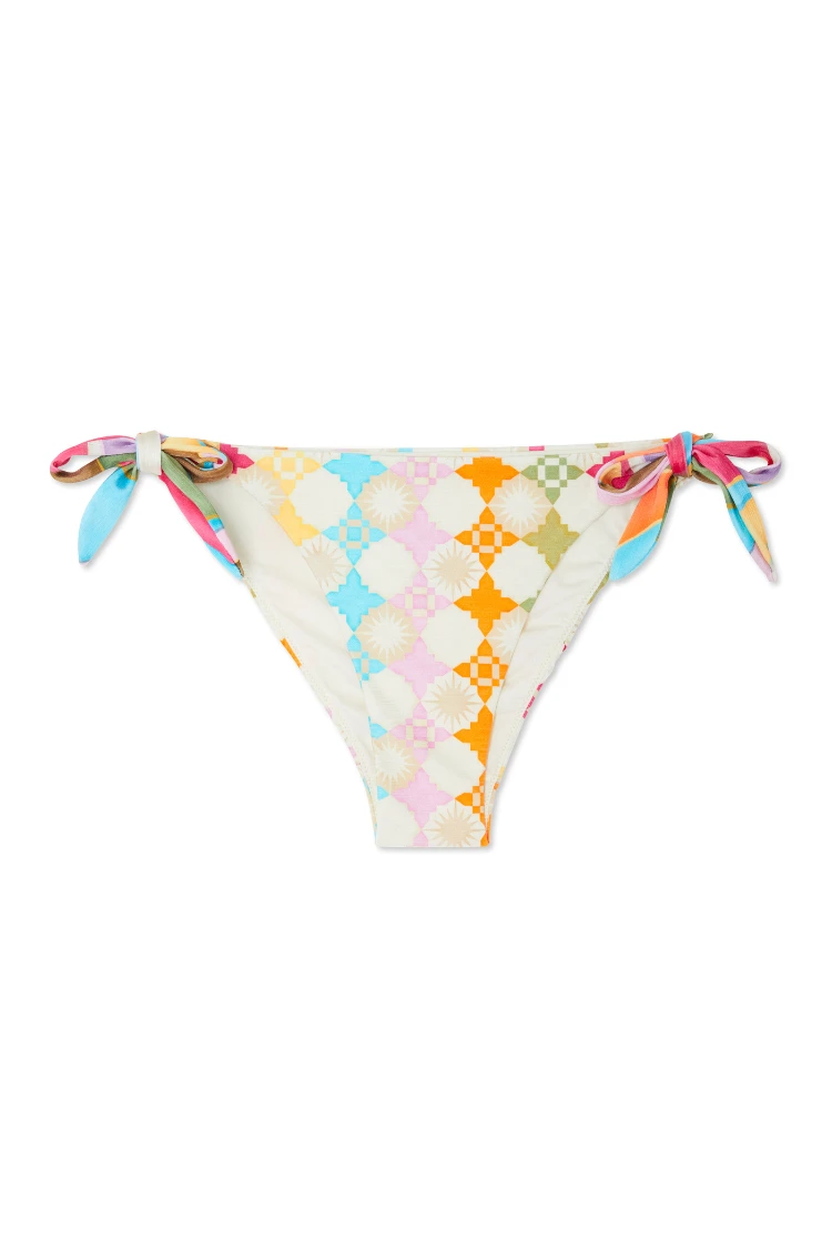 Feel comfortable and confident in our abstract tie swim bottoms. With a gorgeous multicoloured print and flattering waist ties, they are the perfect edition to your vacation wardrobe!