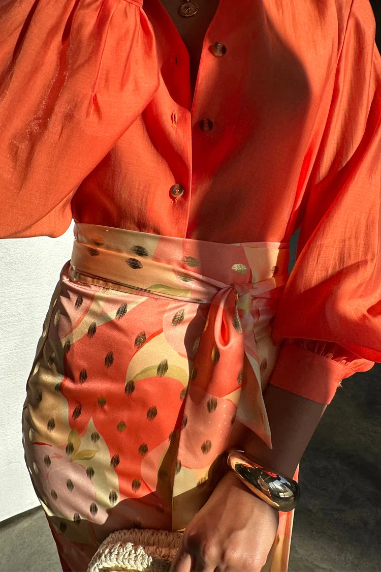 The Apricot collection is the epitome of a sun bathed glow, through soft orange tones and golden accents. Fortunately for us (and you!) Apricot Crush has been named the colour of the year and will be a continuing colour trend throughout the rest of 2024. We have put a spin on some of our previous summer winners and would like to reintroduce them to you in a refreshing yellow and orange palette. Our classic jaspre has a wrap waist that can be adjusted and tied in a multitude of styles, and of course can be worn day to night.