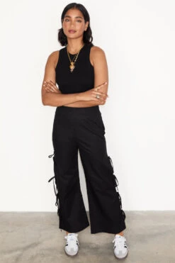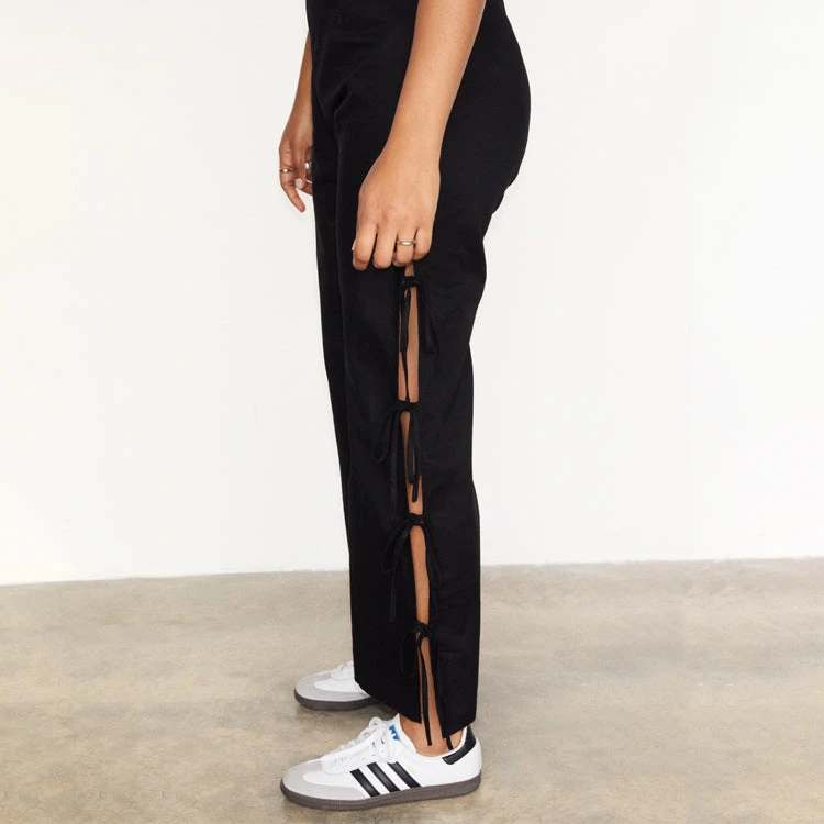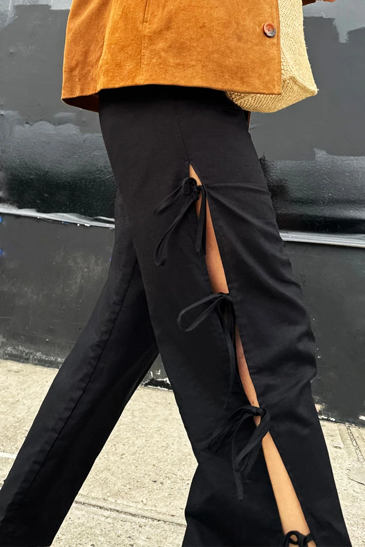 Such a fun alternative to a classic linen trouser. With ties up each leg, you can adjust how fitted you want them to be, and the little bows are such a statement trend right now. Pair with one of our tank tops and sneakers.