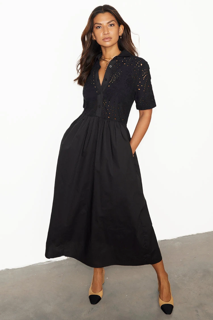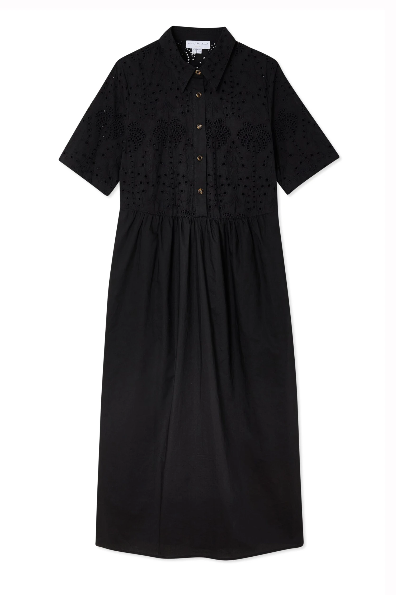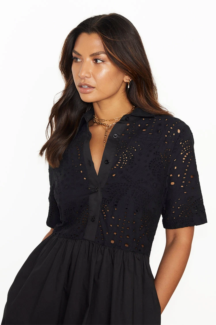 This broderie design was curated by our in-house design team, inspired by their trips to the spanish islands. The beloved palms are a recurring theme throughout our collections because they feel like balmy beach evenings and sunshine on the skin. Also available in Red.