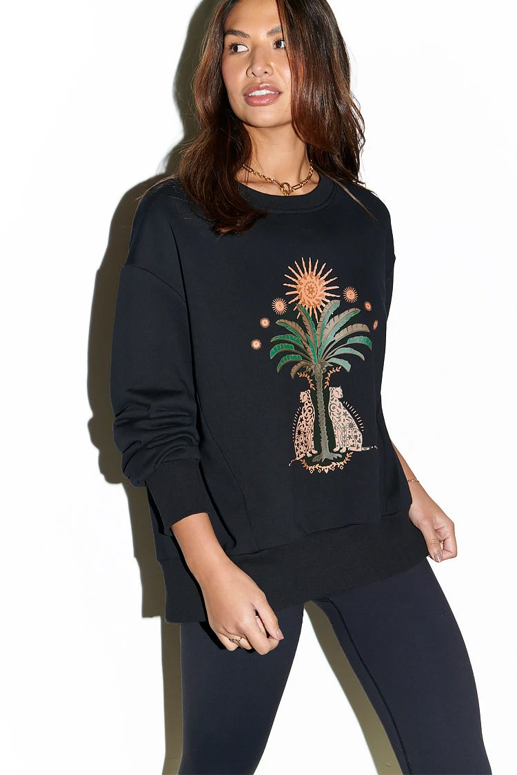 With gorgeous NFD emblems, in our running wild print that we are obsessed with. The relaxed slouchy style is grounded with ribbed trims and slits at the back to give the fit some structure. Really great for layering in through the seasons – and so easy to throw on over athleisure or jeans for dog walks and morning coffee runs.
