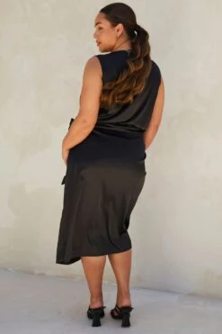 The most stunning and simple wardrobe staple… Elegant black satin, sleeveless for the summer months, and a wrap waist ensures a truly flattering fit on all body types. Flexibility with coverage as always, just adjust the waist tie to wear the neckline higher, or keep it more open for a sassy chic look. Perfect to layer on colder days too.