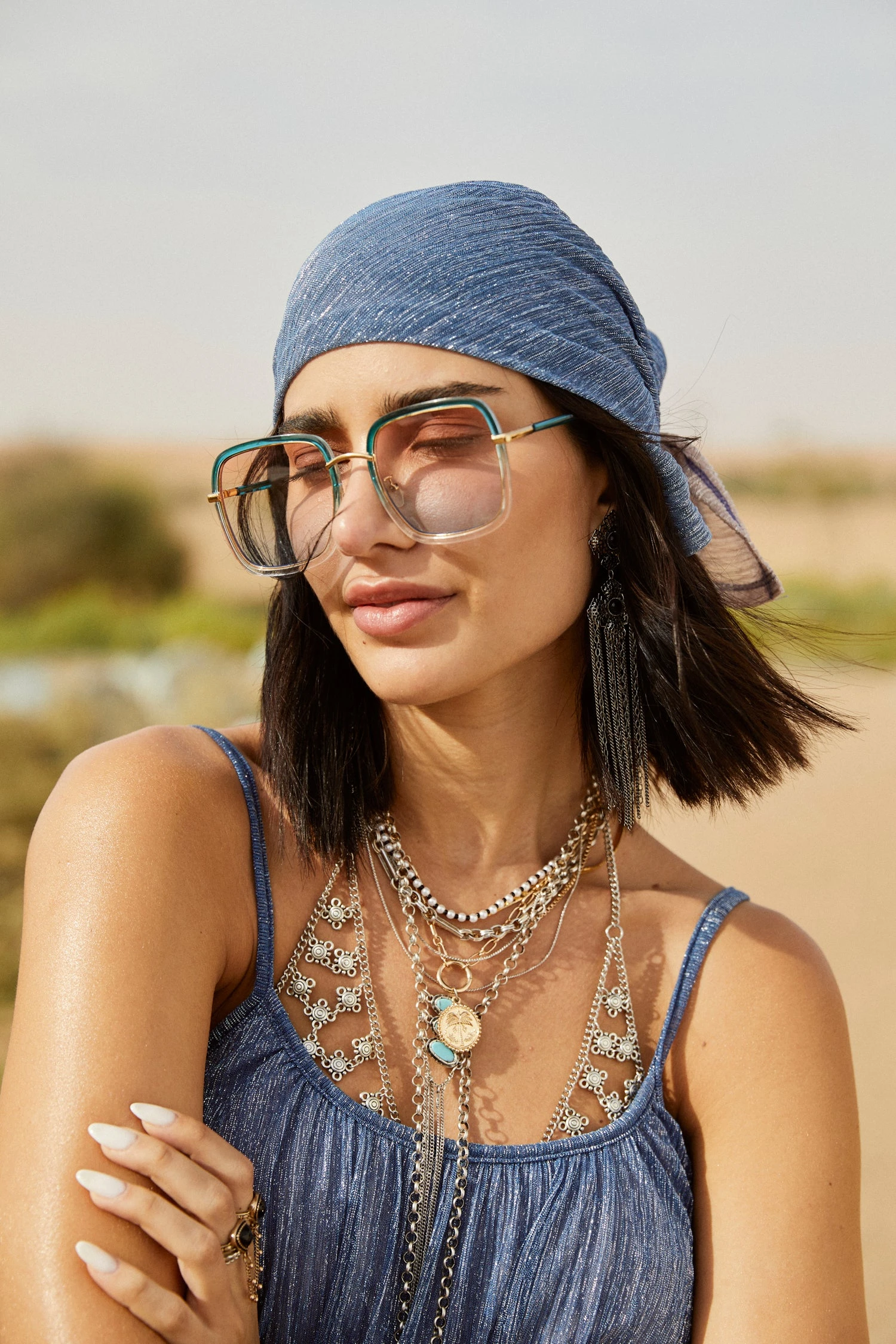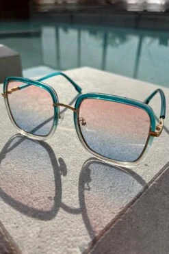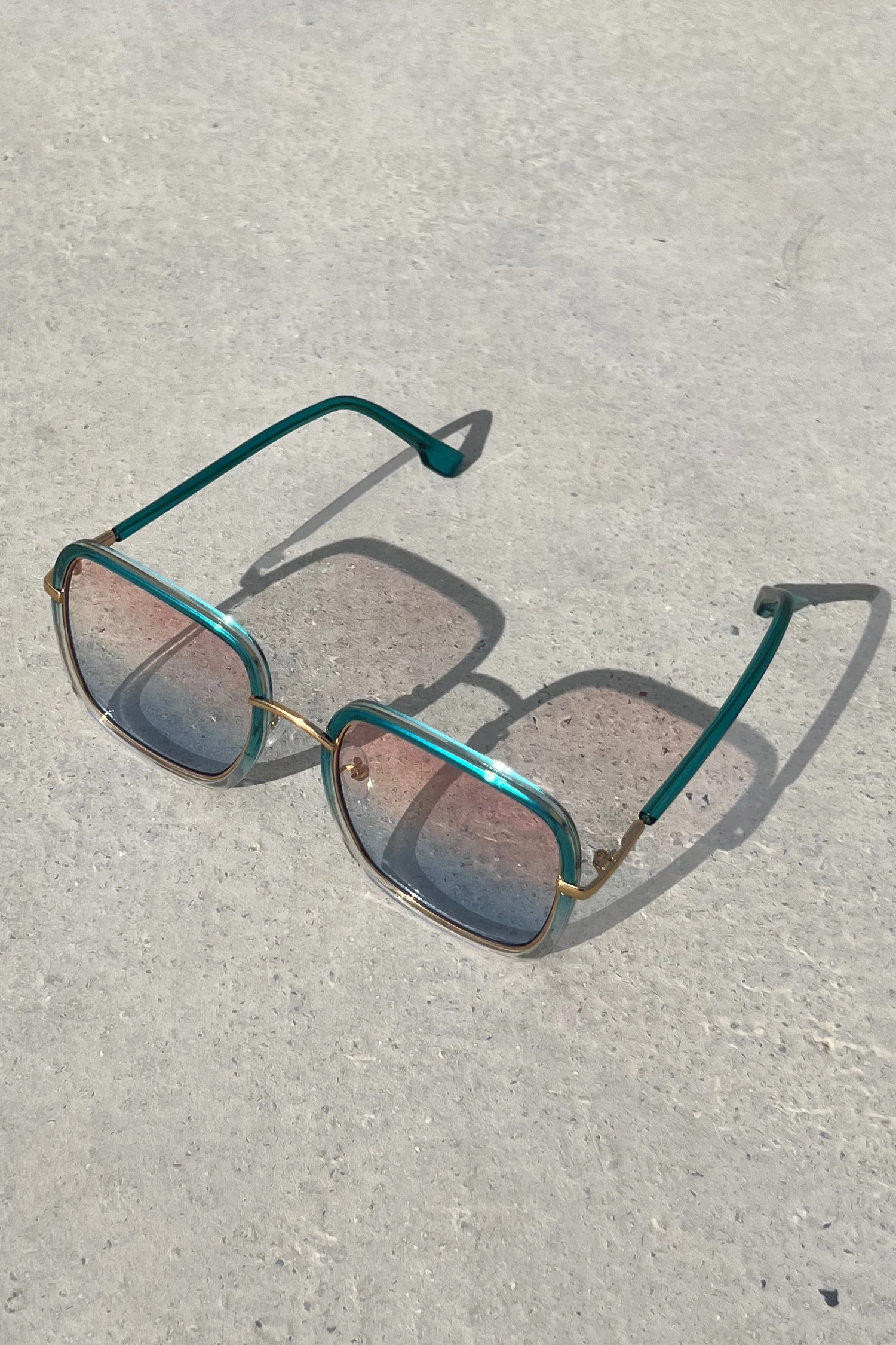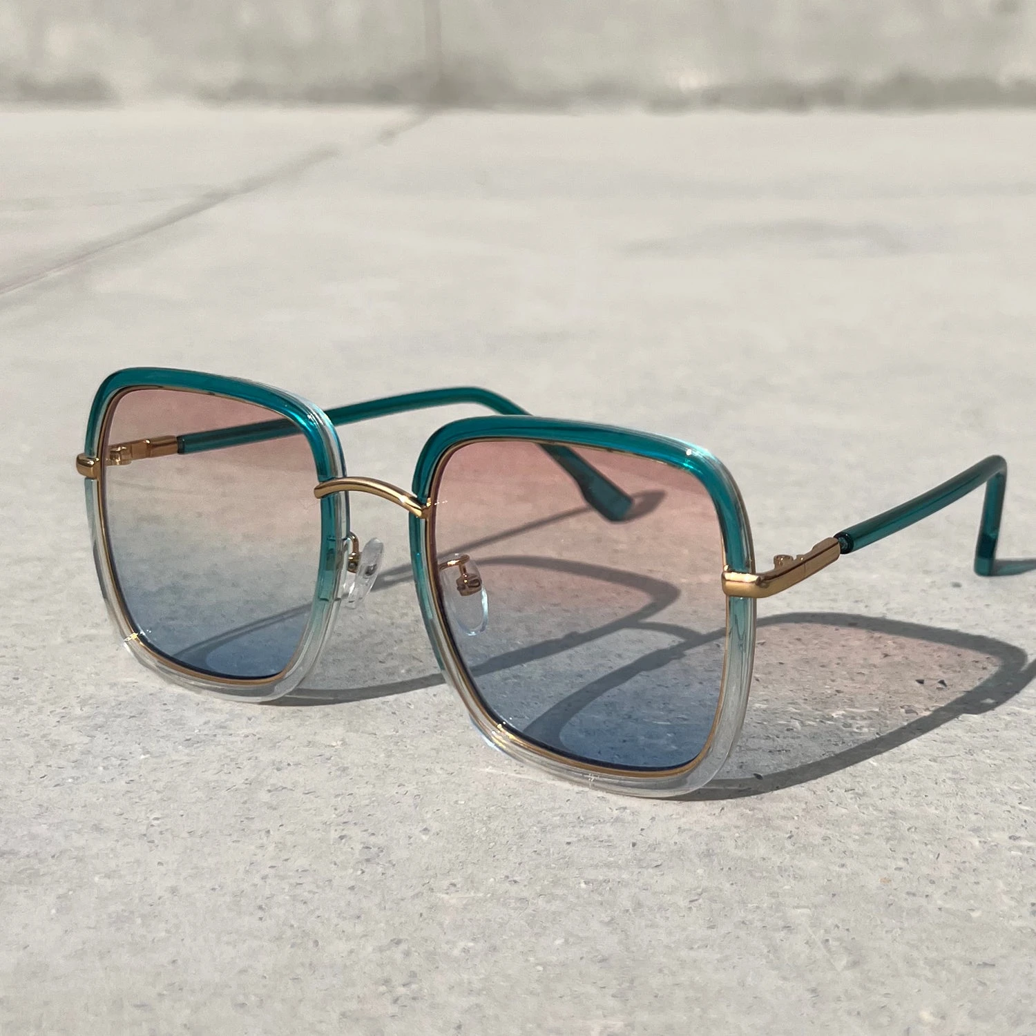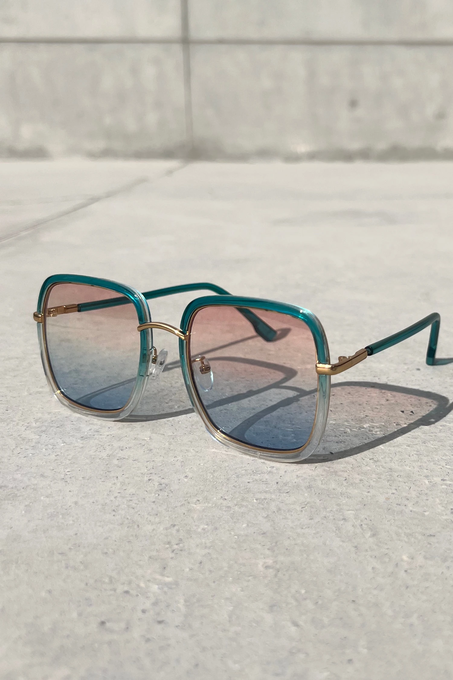The most stylish way to shield your eyes from Ibiza rays… Blue ombre square frames to structure the face, and rose tinted lenses. Featuring Never Fully Dressed branded arms.