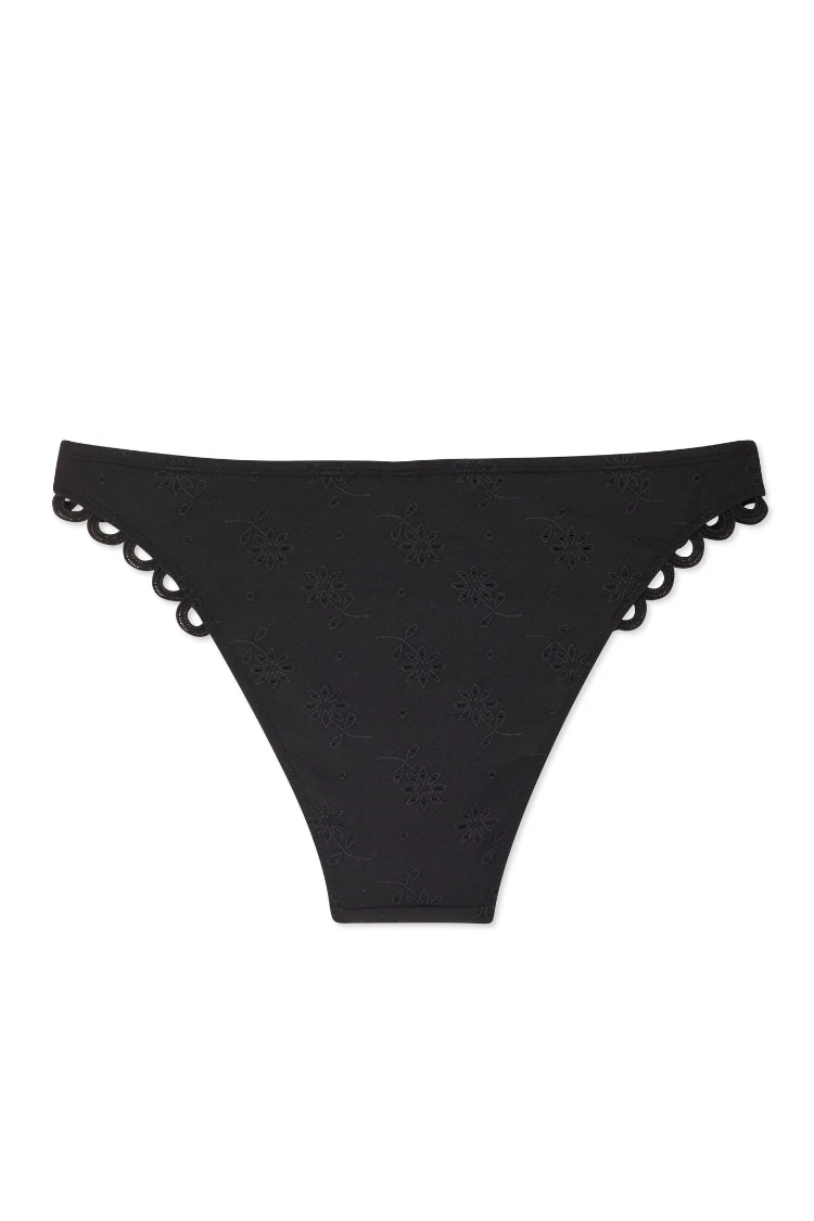 The loop edge detailing adds that NFD flare to this broderie bikini brief. Match with our broderie black bikini top for the complete look.