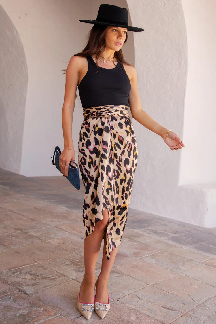 We’re redefining leopard print with our bestselling Jaspre wrap skirt. We believe it’ll become the most reached for item in your wardrobe (don’t worry minimalists, we consider it a neutral). We’ve added french seams to give it such a smooth finish and improved quality. With an adjustable wrap for a whole host of versatile styling options, and cut from a sleek satin, it’ll skim the figure and define the waist. Wear to weddings or just with a tee and trainers for the school run.