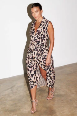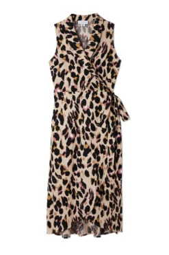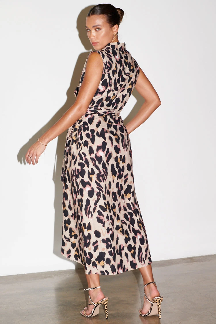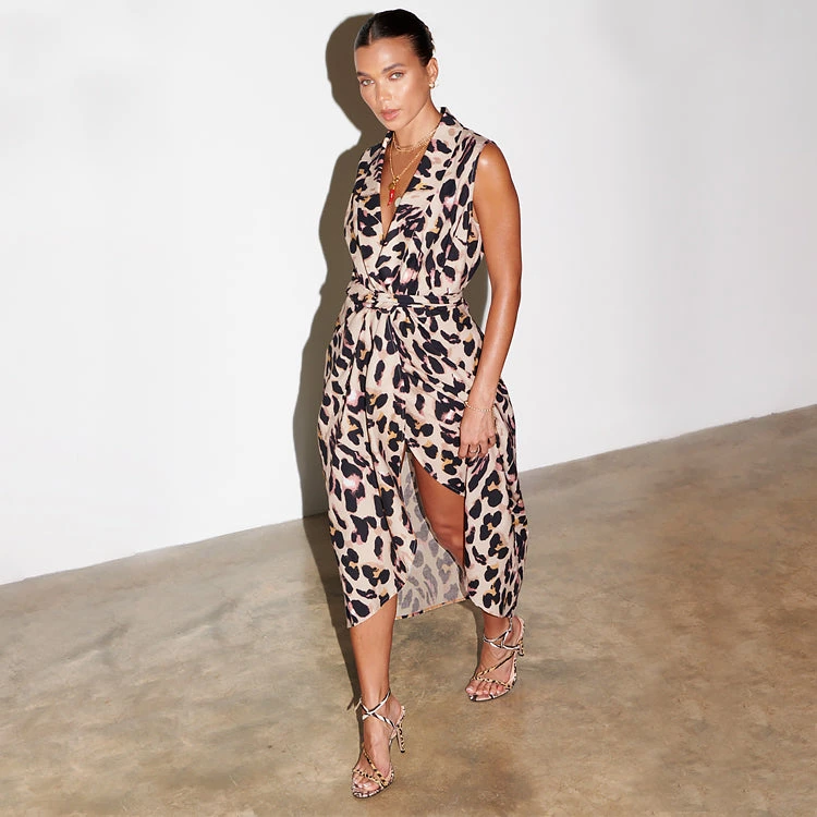 We’ve created a new take on our signature leopard satin pieces, and turned them into a new fabric base. A soft Linen cotton blend that is so lightweight and fresh, and feels really premium. The Brooklyn dress is sleeveless so it’s perfect for warmer climates, or layering through colder months. The wrap waist ties for more/less coverage and a host of styling options. Internal orange bindings secure a clean finish and add a pop of bold colour.