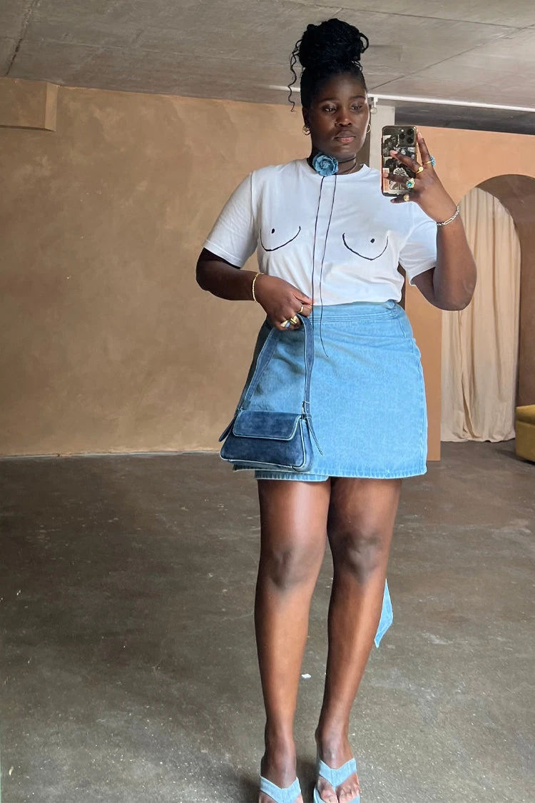 Everyone’s favourite, the denim jaspre now in mini! The wardrobe essential you NEED. So stunning as we’ve styled it with the rose crop top and a wedge but looks just as great with a graphic tee and trainers or office chic with a shirt and sandals. Such a perfect throw on for an effortless look, even carried through the seasons with boots – with so many styling options it’ll be your most worn piece (guaranteed).