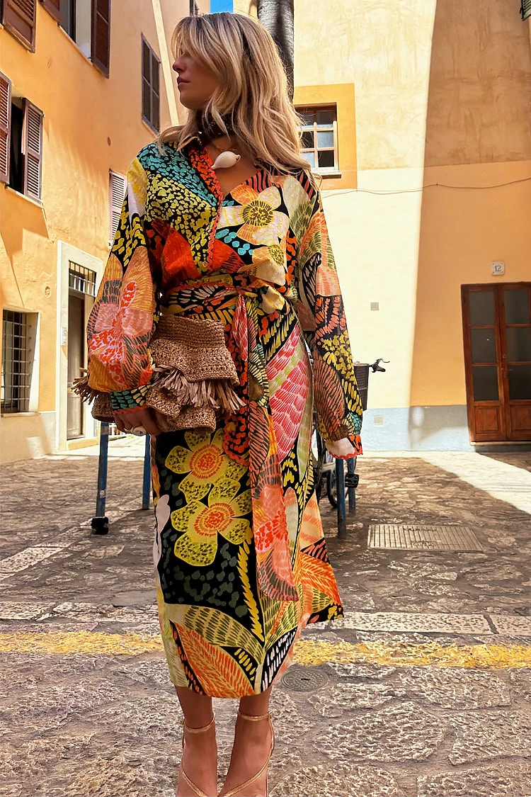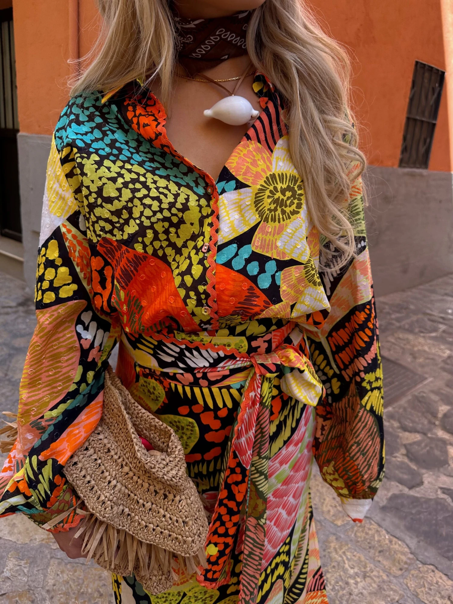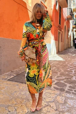 Made from a fresh soft cotton, this skirt has a wrap waist for adjustability and versatile styling options, perfect for sun-soaked vacation days or wedding guest dressing. Our new Fiji print has an ideal colour palette for strolling along cobbled streets in the sunshine, over a bikini or paired with the matching Miley shirt.