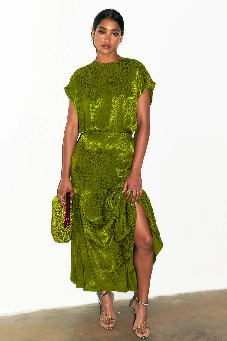 Lime green is the colour of the season and we are delighted… SO great with every skin tone, and works for any weather. This animal jacquard is a more subtle option than a print, but still has that bold, head turning NFD edge. A sophisticated option for office or dinner parties, and so gorgeous for wedding guest dressing.