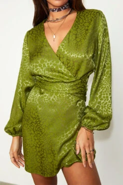 Introducing our Green Jacquard Mini Vienna Dress – the epitome of elegance and versatility. Crafted with a blend of luxurious viscose and polyester materials, this dress exudes sophistication, comfort and ease of movement. It has a wrap waist design, allowing you to adjust the fit to your preference and accentuate your silhouette effortlessly. The intricate jacquard pattern adds a touch of opulence, making it perfect for both casual outings and special occasions.