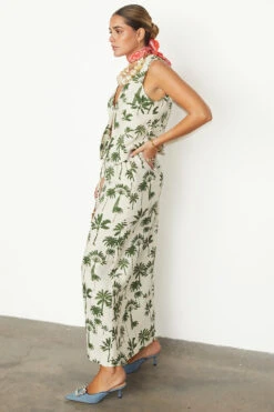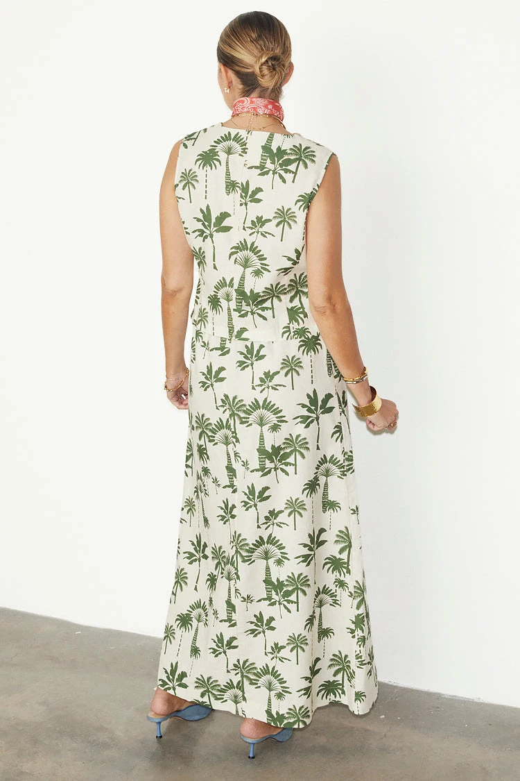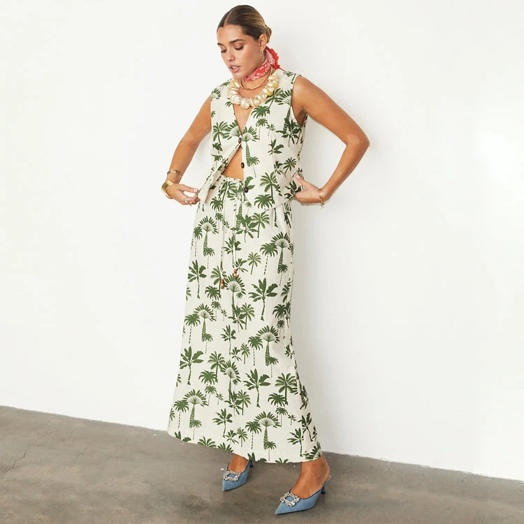 Crafted from a blend of luxurious linen and cotton, this maxi style skirt is adorned with a mesmerising palm print, creating a sense of grounded flare.