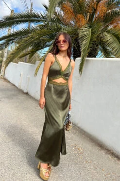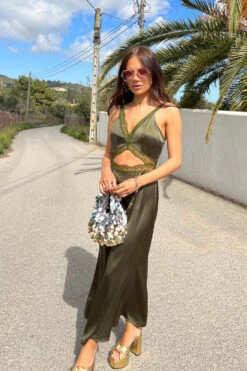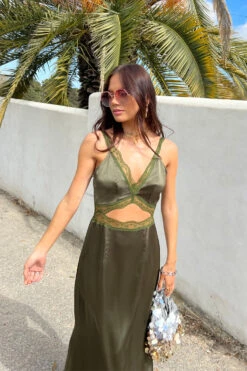Our bestselling mimi shape is back and in a new khaki colour way with lace trims and an under bust cutout detail. Such an elegant fit for a friends wedding or girly brunch dates. Pair with our metallic heels or throw on a cardi and boots on chillier days.