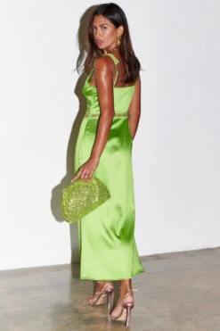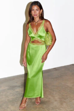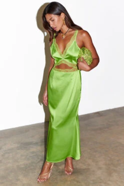 Cut from a glossy satin that feels so luxuriously heavy and soft. The lime green base is trimmed with matching lace that feels super elegant and feminine. The cut out at the centre is SO flattering, and still feels a little sexy even though there’s a lot of coverage.
