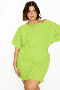 Lightweight plisse fabric drapes gracefully, while the striking lime hue adds a pop of freshness to your wardrobe. With a pull-on design, getting ready has never been easier. Whether you’re strolling along the coastline or enjoying a brunch with friends, this dress effortlessly transitions from day to night, ensuring you’re never fully dressed without a touch of flair. Elevate your ensemble and embrace the joy of easy elegance with NFD.