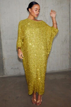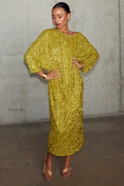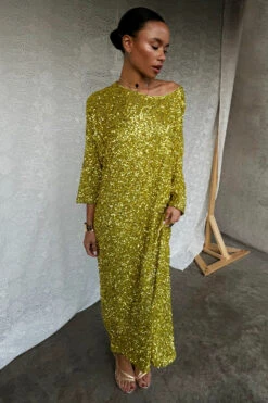Crafted from hundreds of lime sequins that are highlighted by the sunshine, and with it being the colour of the season, this dress will take you from festivities through to festivals. With a relaxed and slightly drapey fit, there’s room for adjustability (great for bump dressing) and also makes it versatile for styling.