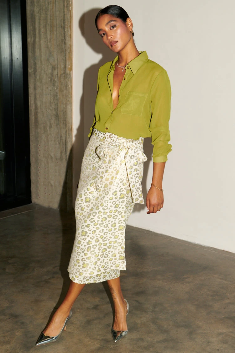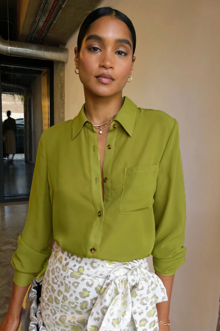 An iconic NFD style, in not just any new colour way. Introducing the colour of the season – lime green (we’ve got lots coming your way). A summary down silhouette, super versatile and sophisticated, with a front pocket, summary up cuffs and a collared neckline. Cut from a sheer fabric base, we love it over lingerie or a decorative tank.