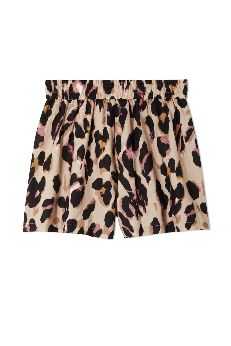 We’ve created a new take on our signature leopard satin pieces, and turned them into a new fabric base. A soft Linen cotton blend that is so lightweight and fresh. These boxer style shorts match the leopard shirt, but feel free to take them through the colder seasons with a chunky knit jumper and boots for that Parisian chic style.