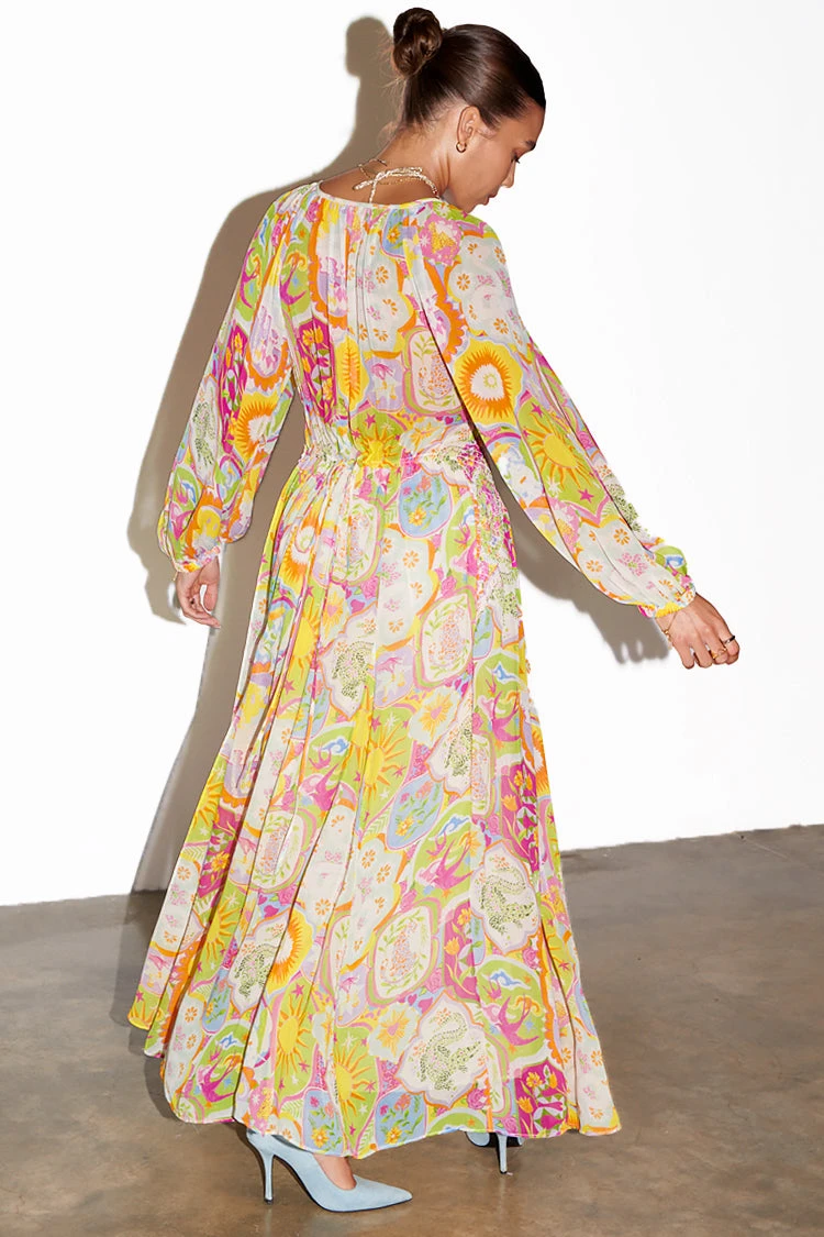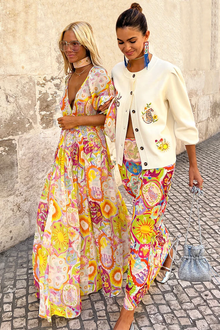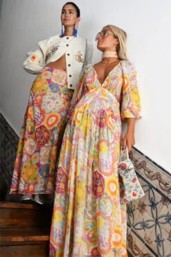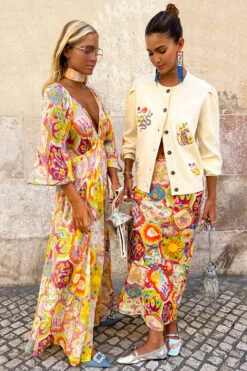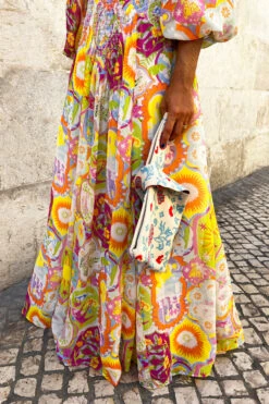 This collection starts in Lisbon and paints a portrait of our love story of the city. The print is composed of beautiful NFD elements like swallows, tigers, suns, snakes and floral arrangements resulting in the perfect summary of Lisbon’s elevated artistry. The range is a true showcase of the beauty of tile-inspired prints whilst incorporating the cities charm and coastal bliss through embroidery and intricate details of Portuguese craftsmanship on luxurious fabrics, perfect for warmer climates. Outfits that can effortlessly transform from day-to-night styling through versatile fits.