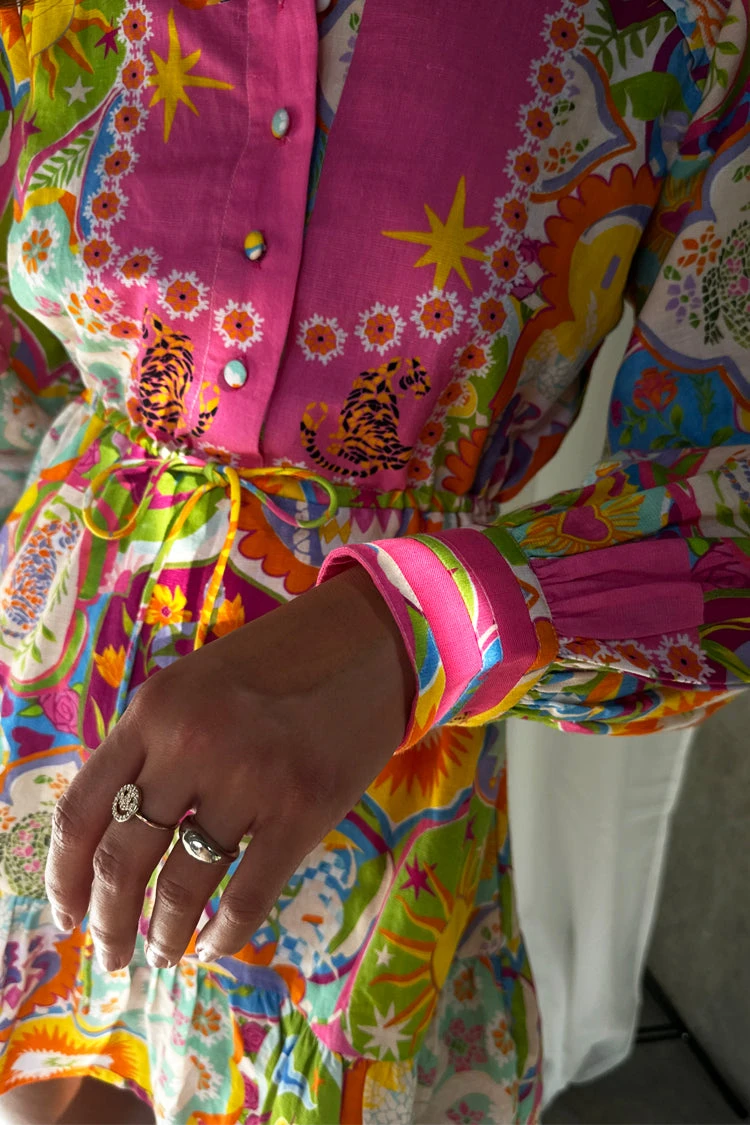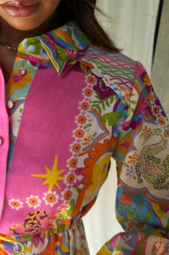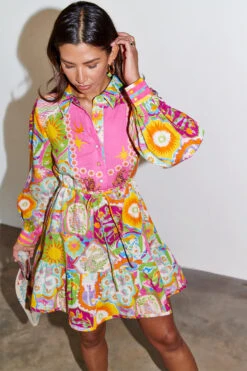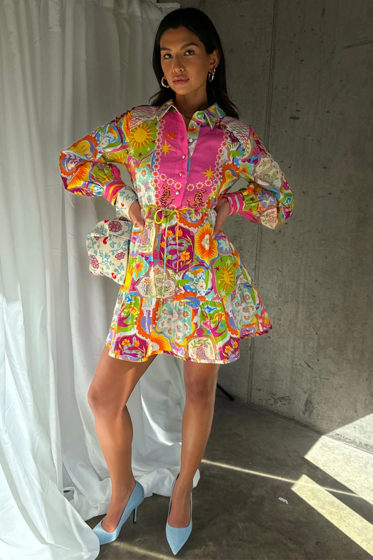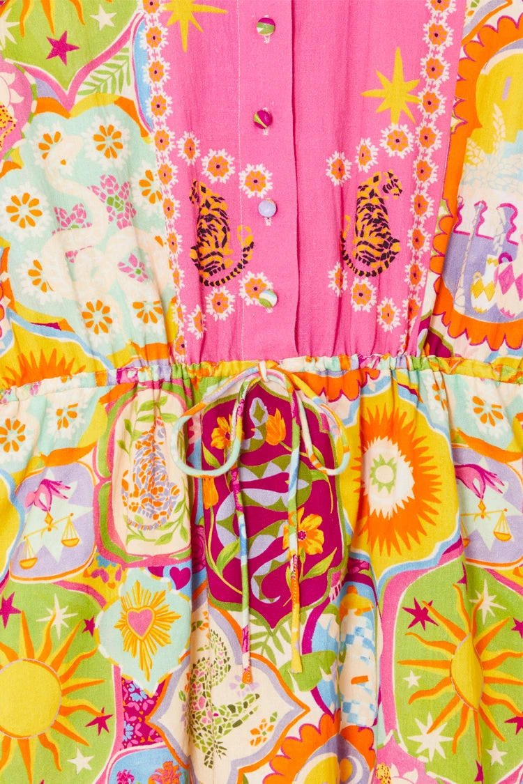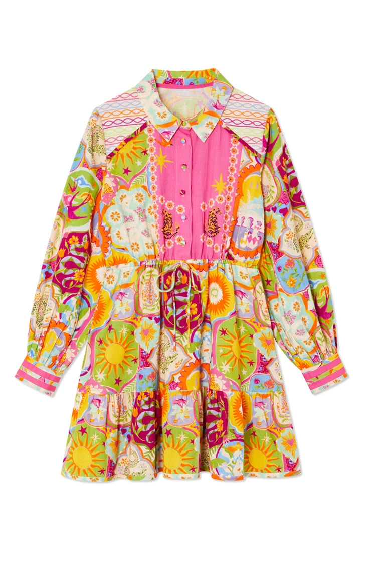 This collection starts in Lisbon and paints a portrait of our love story of the city. The icon of this pack has to be the mosaic print, a hand painted masterpiece adorned with playfully signature NFD elements. This mini dress has a summary down shirt silhouette and a drawstring waist for an adjustable fit.