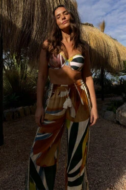 A gorgeous palm print bikini top inspired by the sunshine in Sicily. With contrasting edge stitching to add that NFD flare. Complete the look with our palm leaf bikini bottoms or for a bit more coverage try our gorgeous palm leaf one shoulder swimsuit.