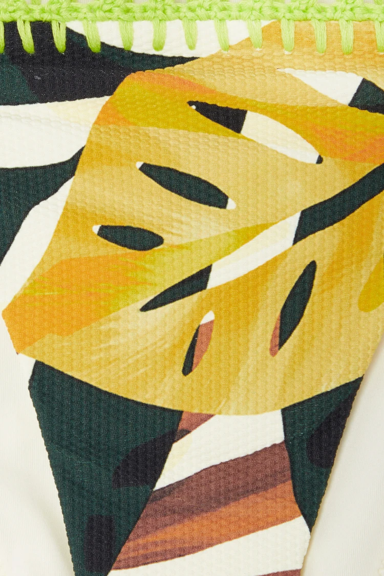 Palm print bikini bottoms with delicate but bold edge embroidery along the front and back and an elasticated waistband for extra security. Inspired by our teams adventures in Sicily and Marbella our palm leaf bikini set is the perfect beach attire.