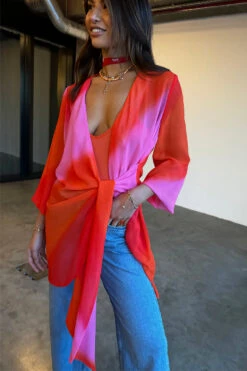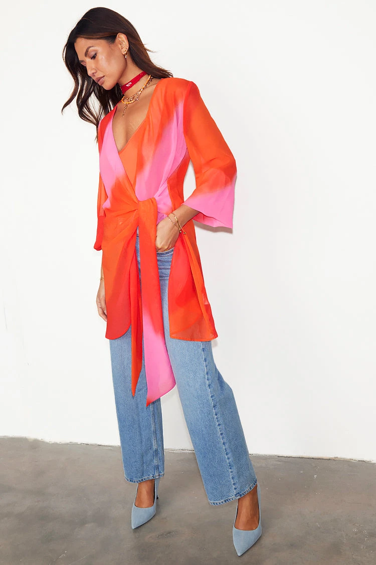 A luxe sheer fabric that drapes the figure and wraps to define the waist and create a subtly sexy v neckline. Super floaty and delicate, so great to take through from the festival season to vacation evenings. A slip is included for coverage and to give it that layered look, but you can pair it with just underwear for sassier styling.