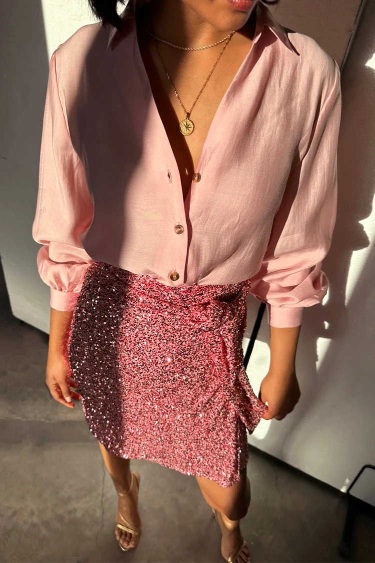 Sequin is really setting the tone this season. This pink sparkle is party perfection with some stilettos or a pointed toe heel. Or style with trainers and a white tee for day dressing, and let it catch and glimmer in the sunlight like a disco ball. Ties in a multitude of styles for amazing versatility. Sequins lined with a weighty satin that feels like it slinks over your figure and ensures a comfortable and non-scratchy feel.