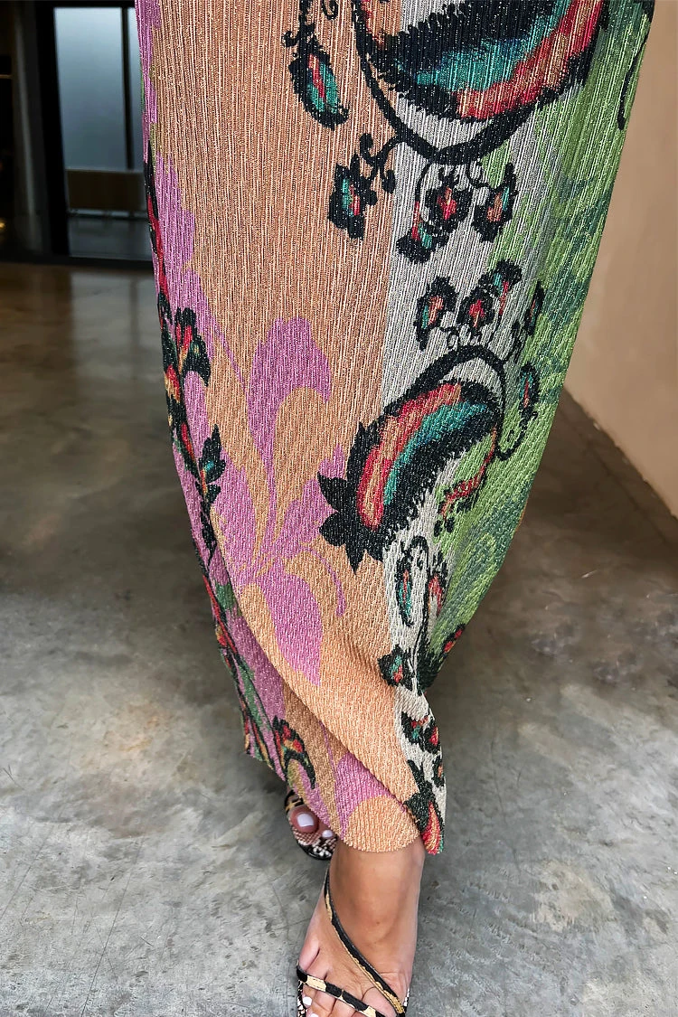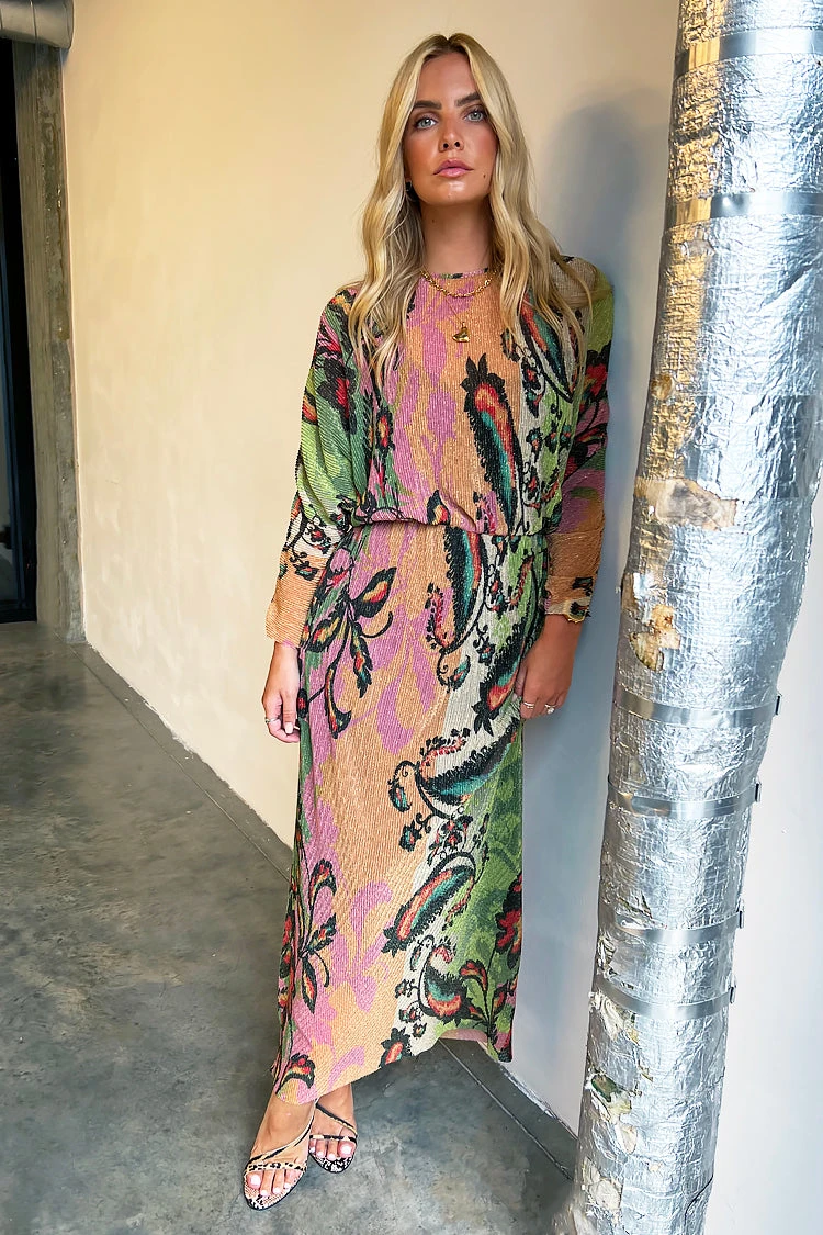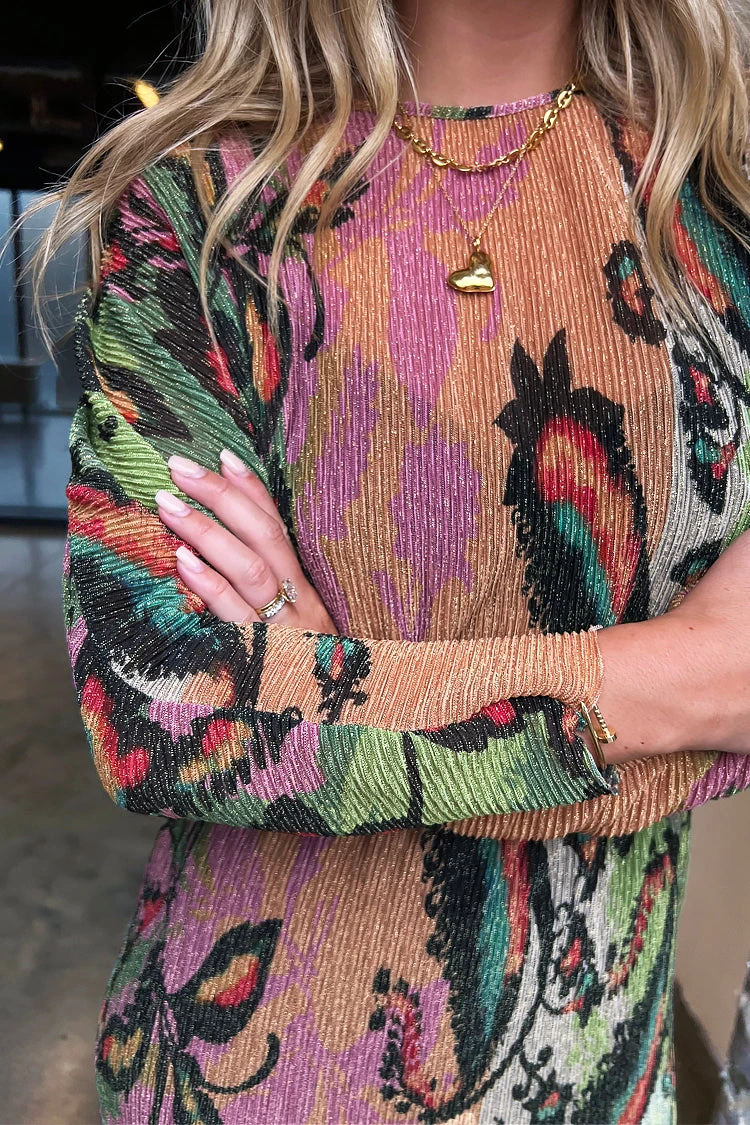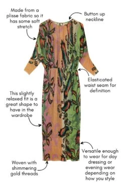 Elevate your fashion game with a dress that effortlessly combines style and comfort. With a bold pattern and metallic fibres woven through the fabric, this is your new go-to dress to make a stylish statement wherever you go. Dress up with pointed slingbacks and a clutch or down with boots or trainers and a leather trench. The effortlessly chic plisse fabric with a nipped in waist will suits any body shape.