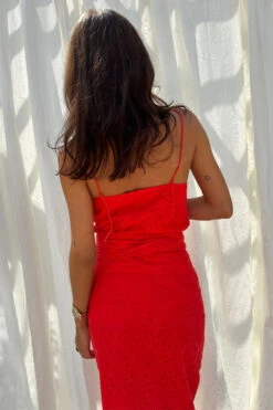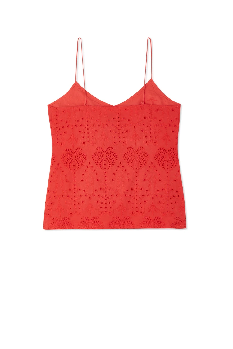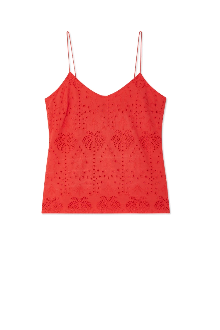 This broderie design was curated by our in-house design team, inspired by their trips to the spanish islands. The beloved palms are a recurring theme throughout our collections because they feel like balmy beach evenings and sunshine on the skin. This cami has adjustable straps so you can choose the coverage, and looks so refined paired with the matching Jaspre skirt.