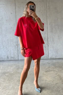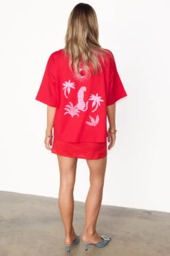 In our classic mini Jaspre shape, with a completely adjustable and multi wear waist tie. . Breathable cotton fabric makes it a suitcase staple, and in a bold red, it’s the colour of the season. Style it down with a crisp white tank or one of our Miley shirts.