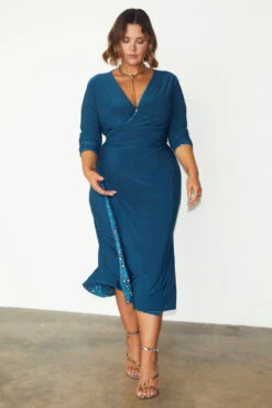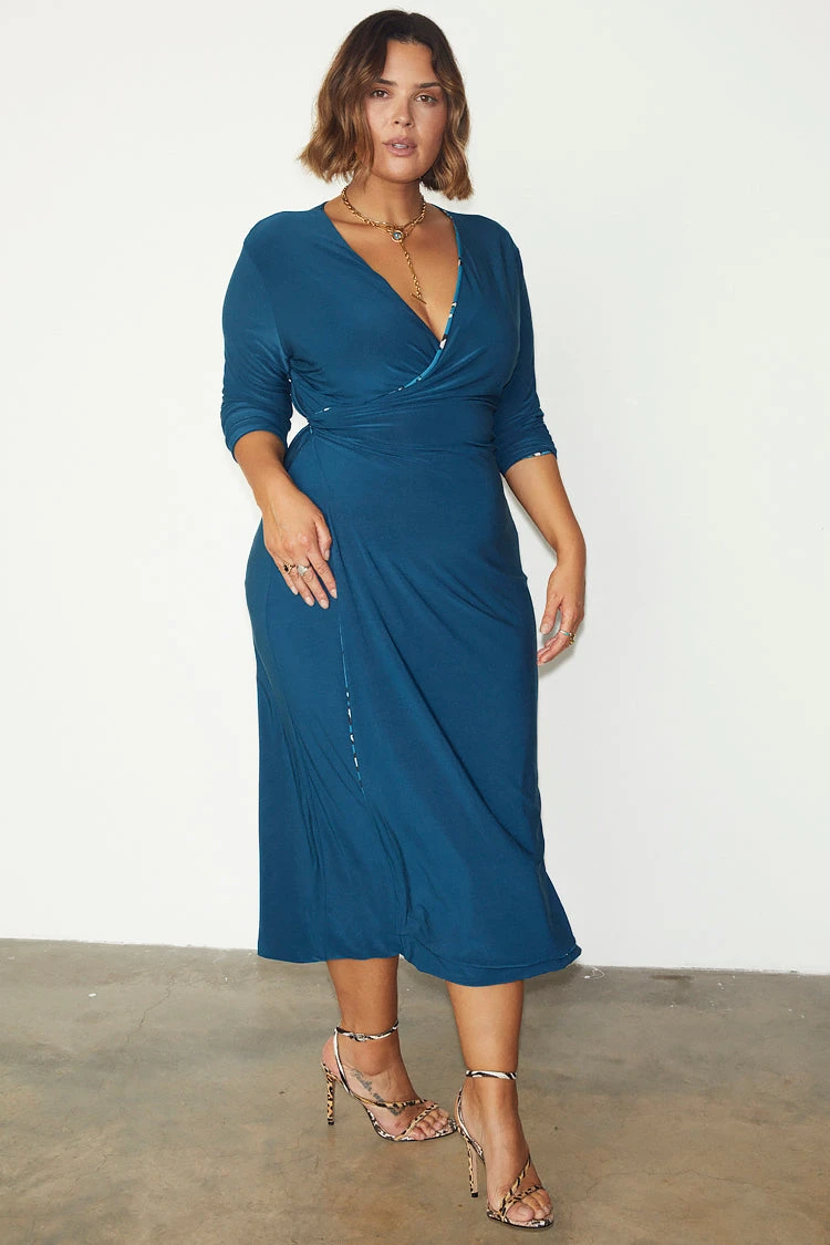 We truly believe in getting the most out of every outfit. This reversible wrap dress has a gorgeous animal print on one side, and a rich teal block colour on the other – making it a serious investment piece. We love that the ties are double sided, so you get a pop of the reversed print when it’s tied at the waist. Made from a sleek and weighty fabric that skims the figure and looks super luxe.
