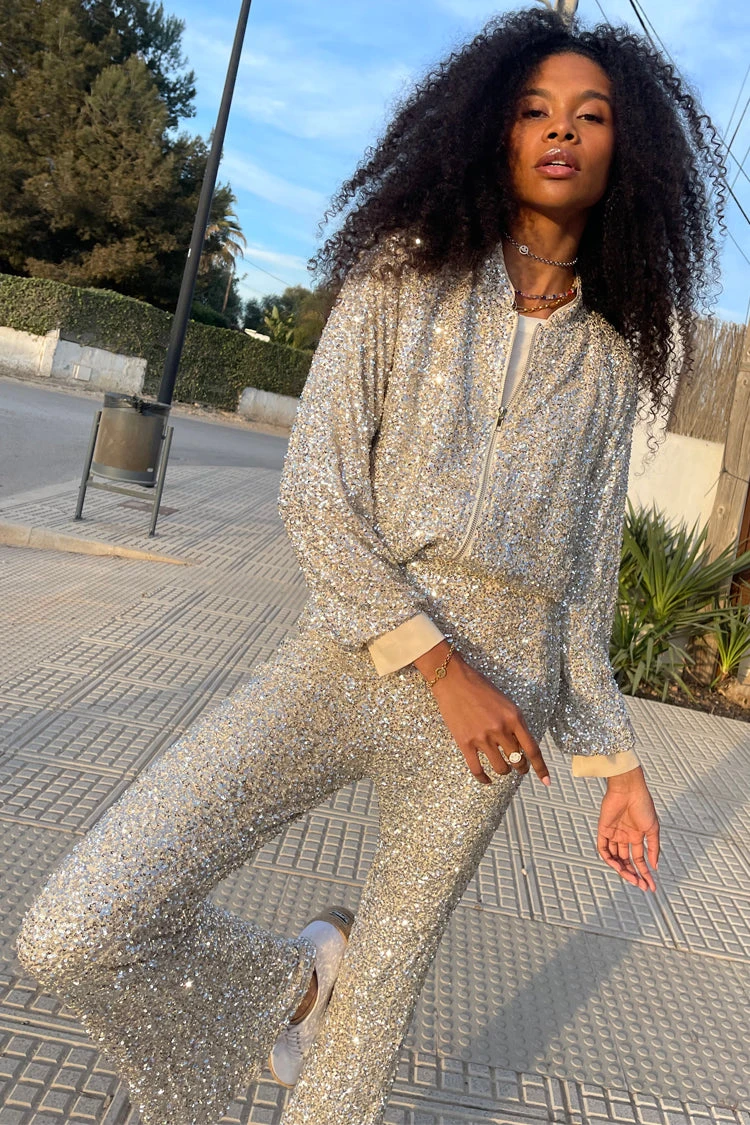 Be the life of the party (or festival) in these sparkly embellished flares. Make a statement with attention-grabbing sequins that’ll start a conversation wherever you go. Extra points awarded for outfit creativity, add the sequin bomber or a graphic tee and trainers.