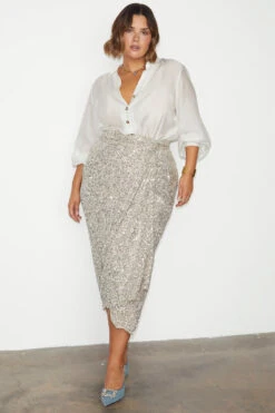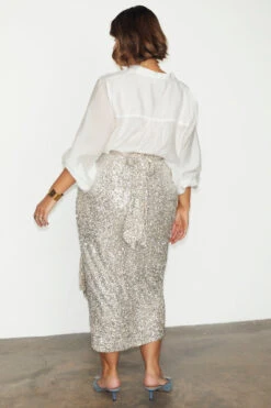 From festival season to bridesmaid chic, sparkle is always a good option. Lathered in silver sequins that catch the sunlight like a disco ball – in our classic Jaspre shape, with a completely adjustable and multiwear waist tie. Style down with a crisp white tank, or go bold in full sequin. Sequins lined with a weighty satin that feels like it slinks over your figure and ensures a comfortable and non-itchy feel.
