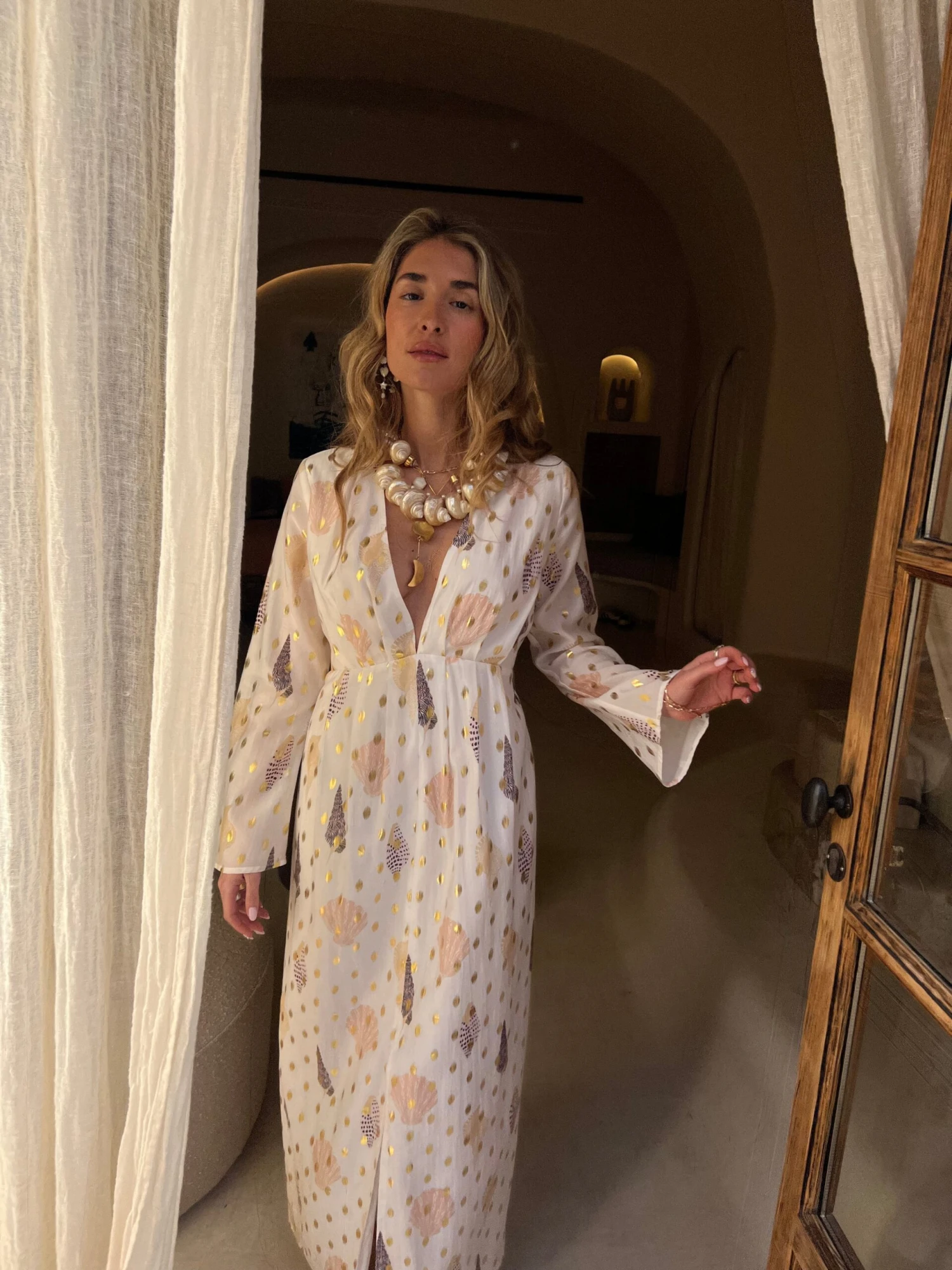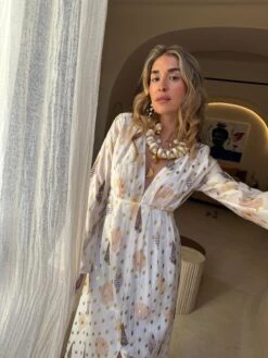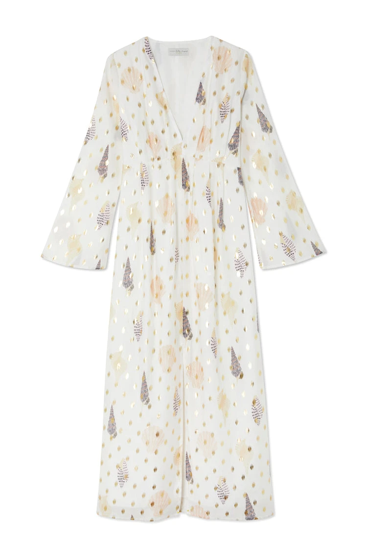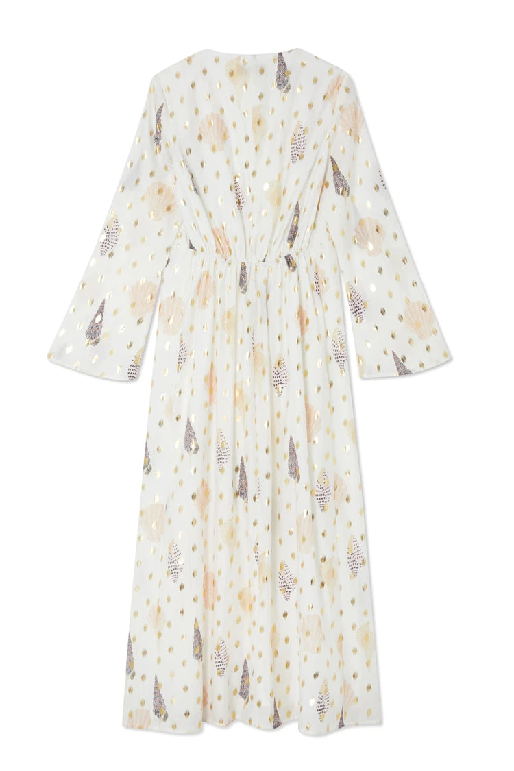 With a gorgeous gold fleck and shell print, this dress is the perfect edition to your summer wardrobe. Take a stroll along the beach and then add some gold jewellery and heels to take the dress from day to night…