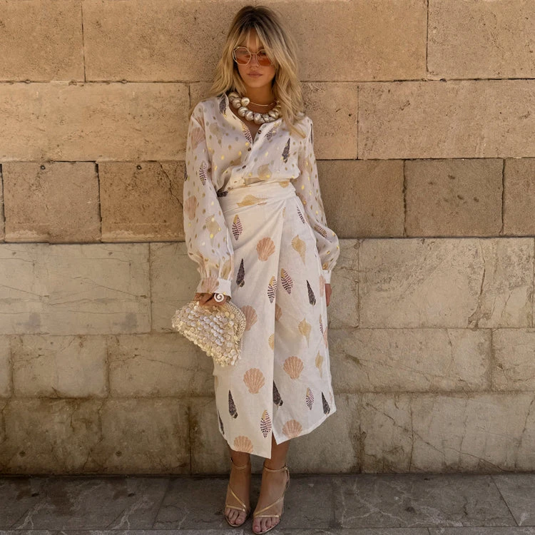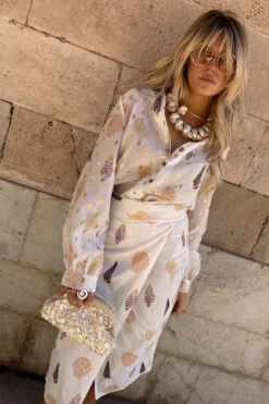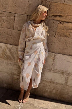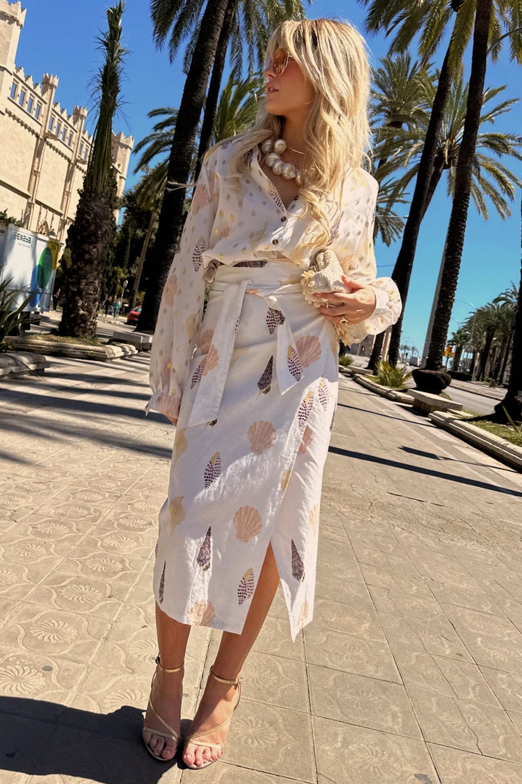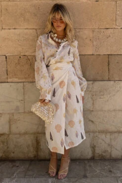 We’ve added another edition to our Jaspre collection, just in time for the holiday season! With a gorgeous gold fleck and shell print, this skirt is the perfect edition to your summer wardrobe. Keep it simple with a plain white tee or smarten it up by pairing with our white Miley shirt. For a bolder look add the shell Miley shirt.