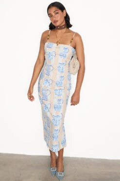 This Cotton linen is super breathable, making it a suitcase staple. The body skimming fit and intricately beaded straps are such a fun attention to detail.